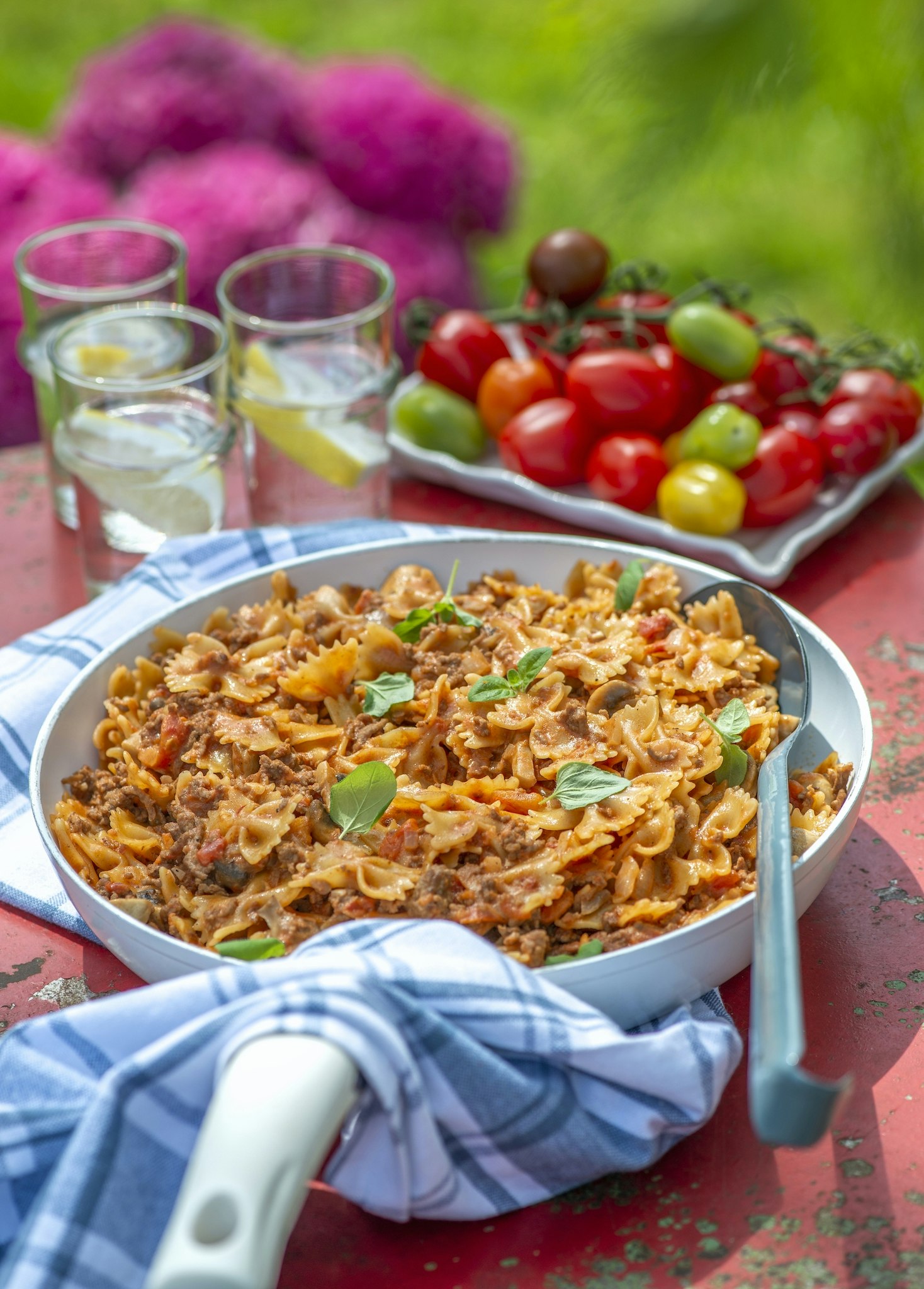 Allt i ett-pasta med färs, svamp och grädde