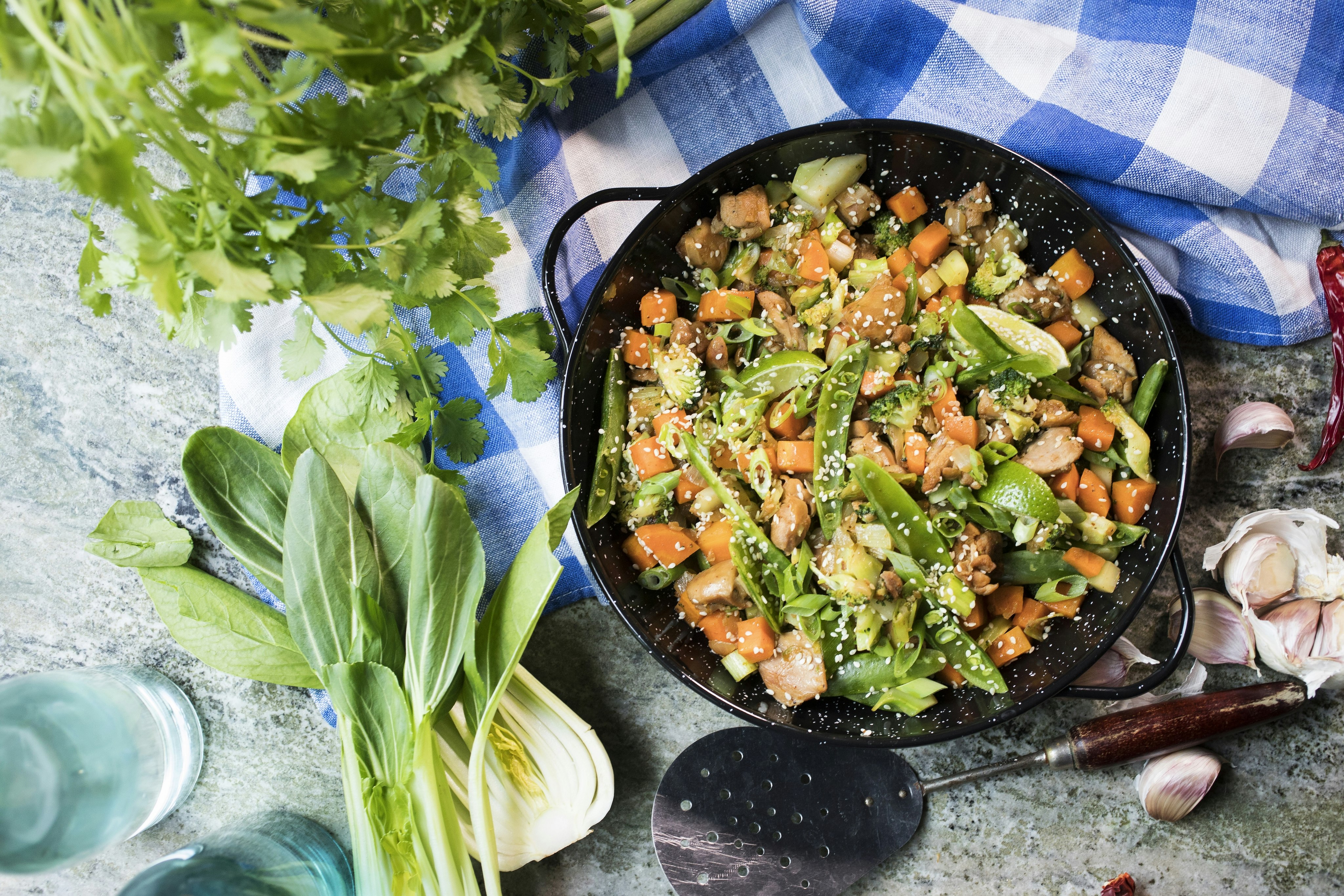 Asiatisk pytt med grönt och kycklinglårfilé