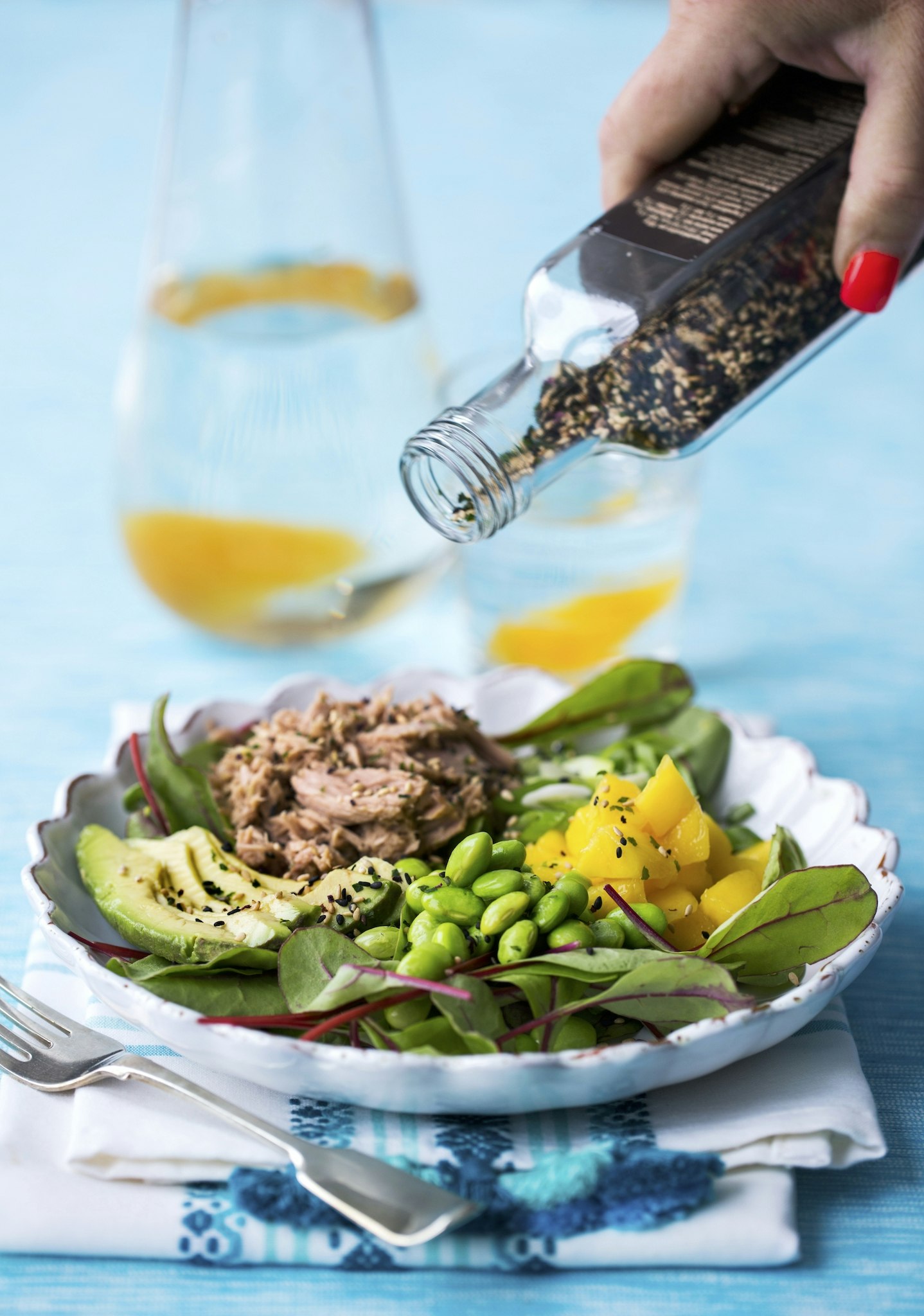 Asiatisk tonfisksallad med frukt och grönt