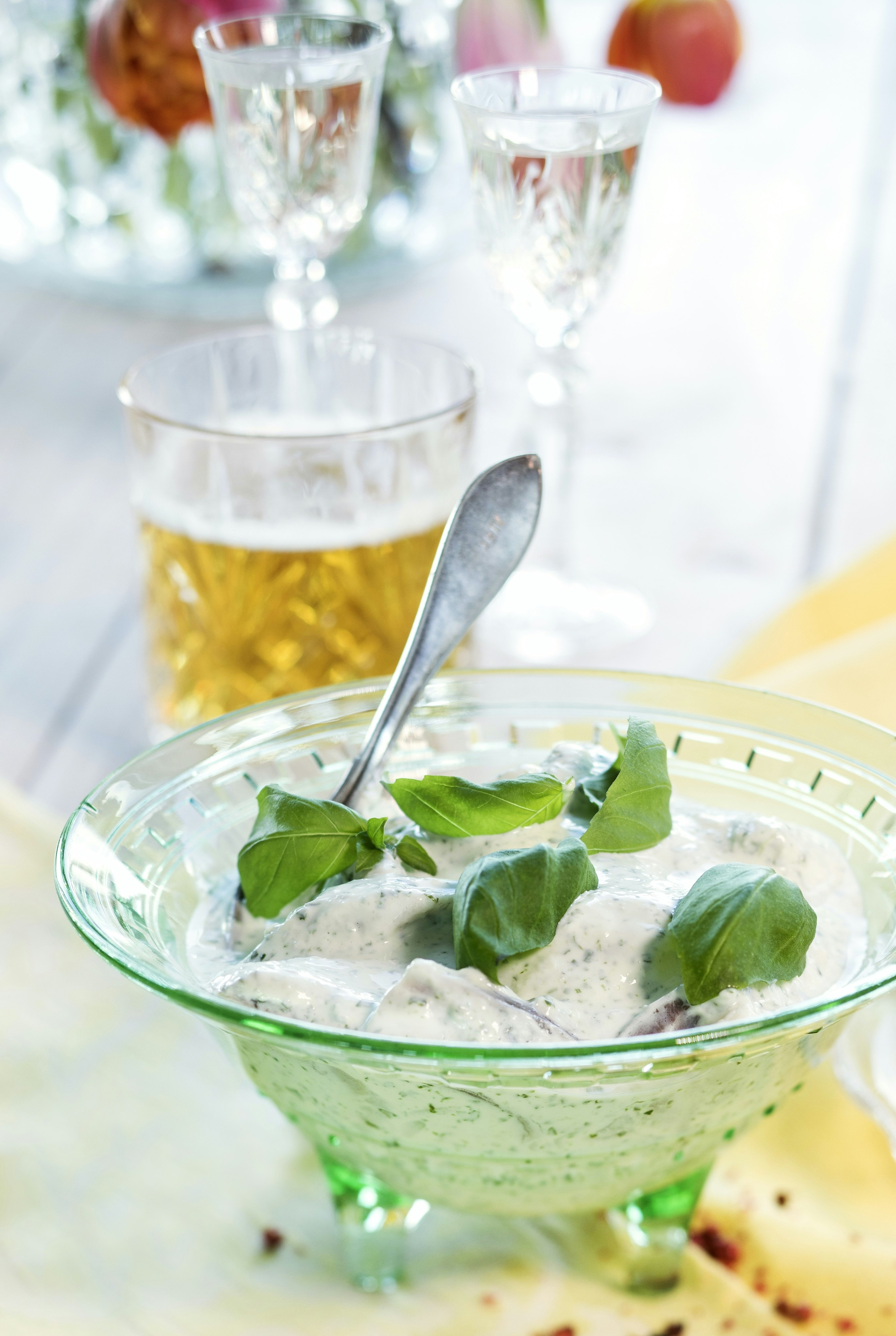 Basilikasill på yoghurt och gräddfil