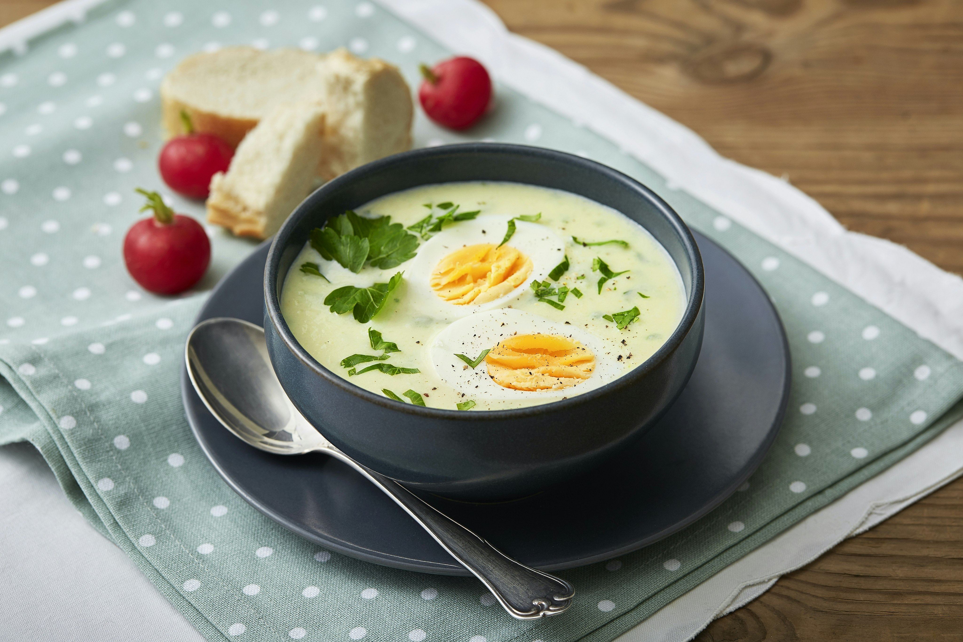 Blomkålssoppa med kokt ägg och persilja