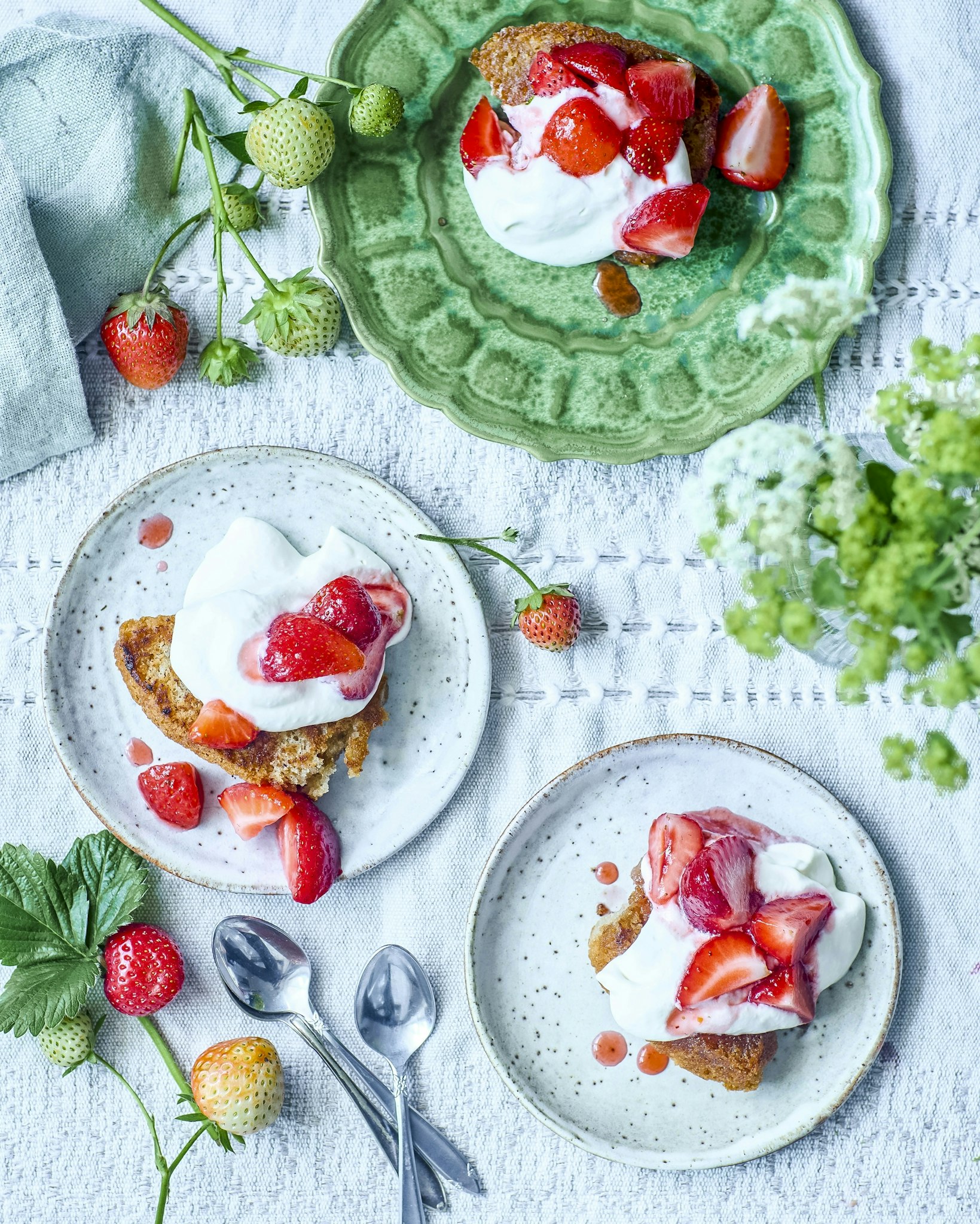 Brynt sockerkaka med crème fraiche och bär