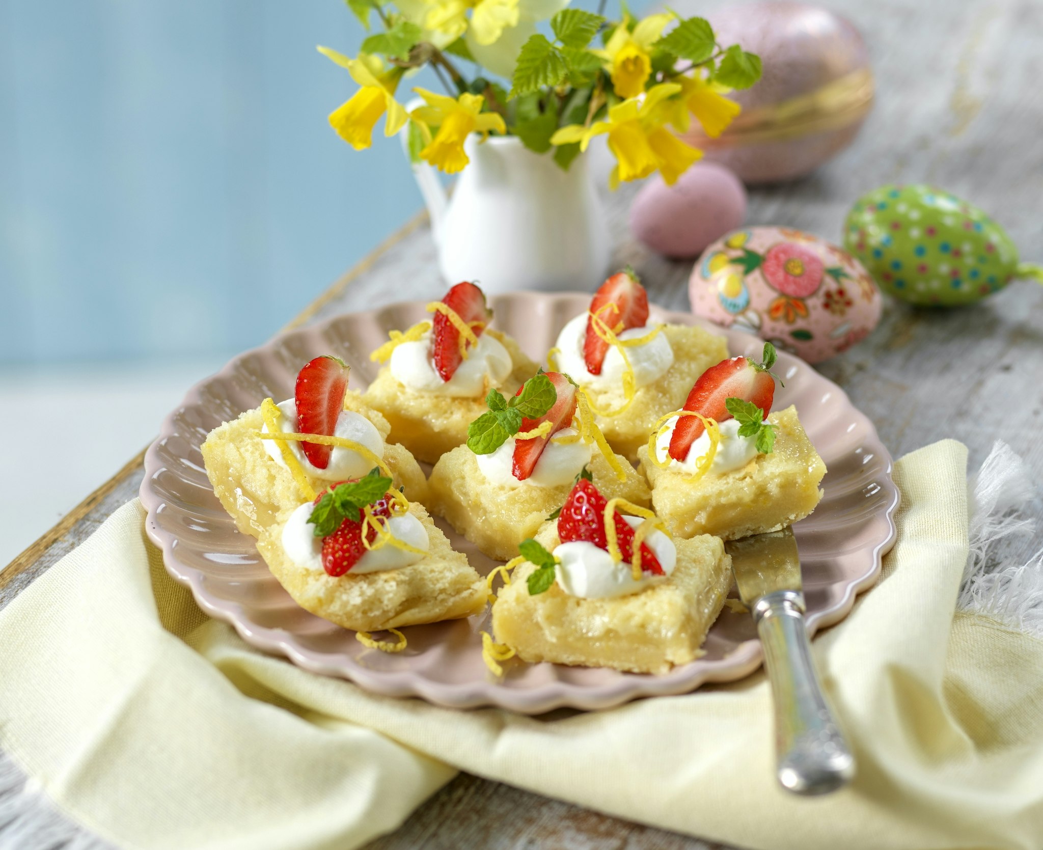 Citronrutor med färska jordgubbar