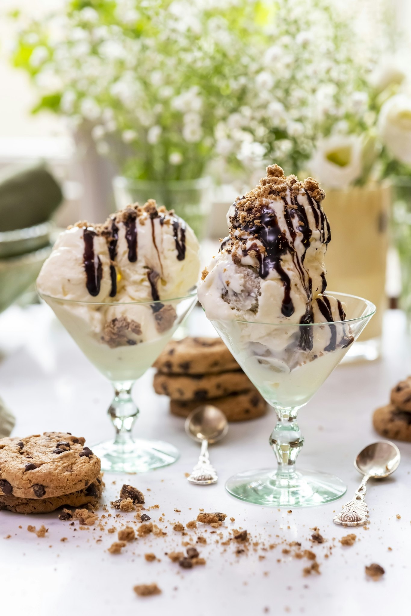 Cookie dough-glass med chokladsås