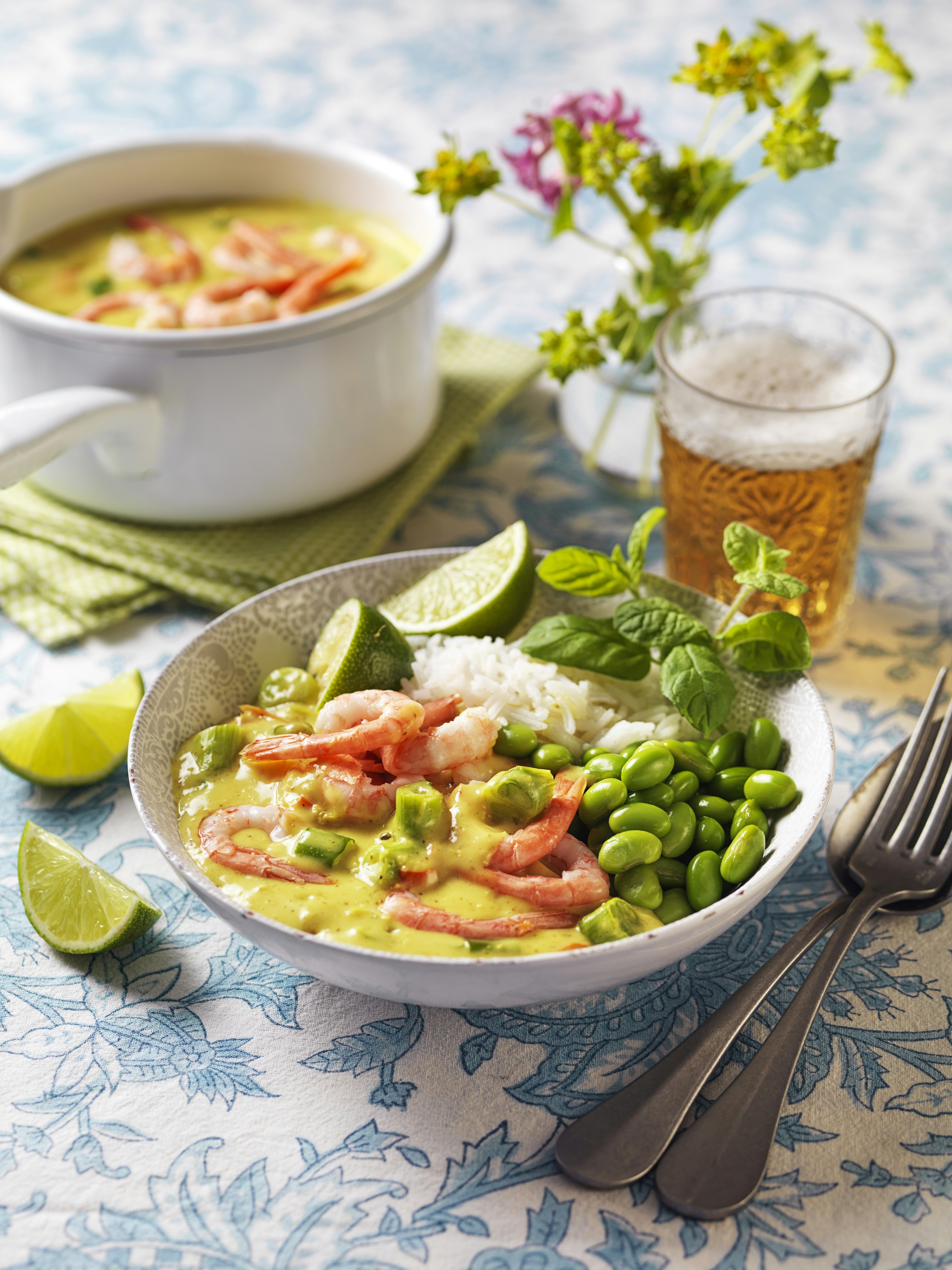 Currydoftande räkgryta med kokosgrädde