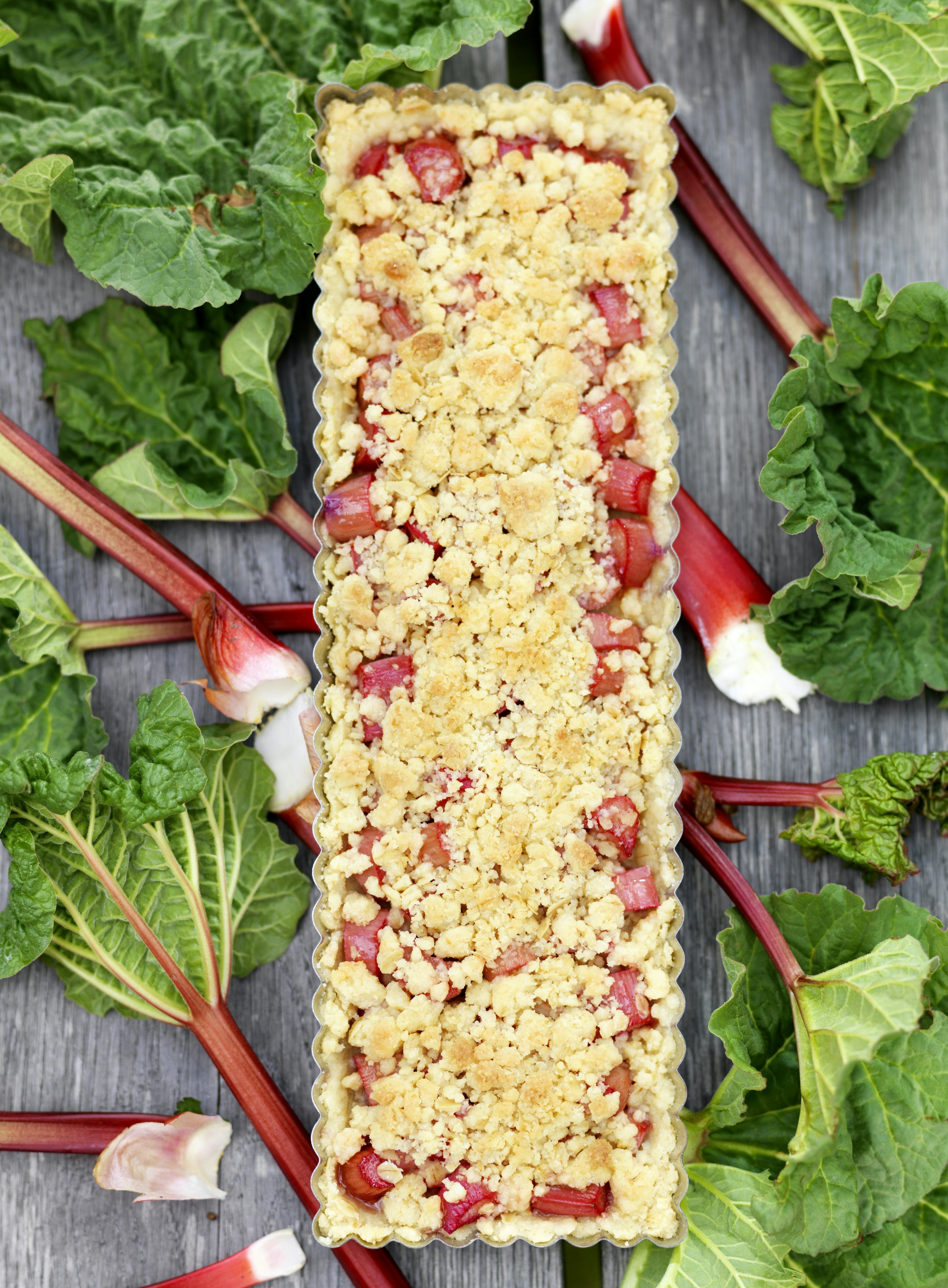 Enkel rabarbersmulpaj med havregryn