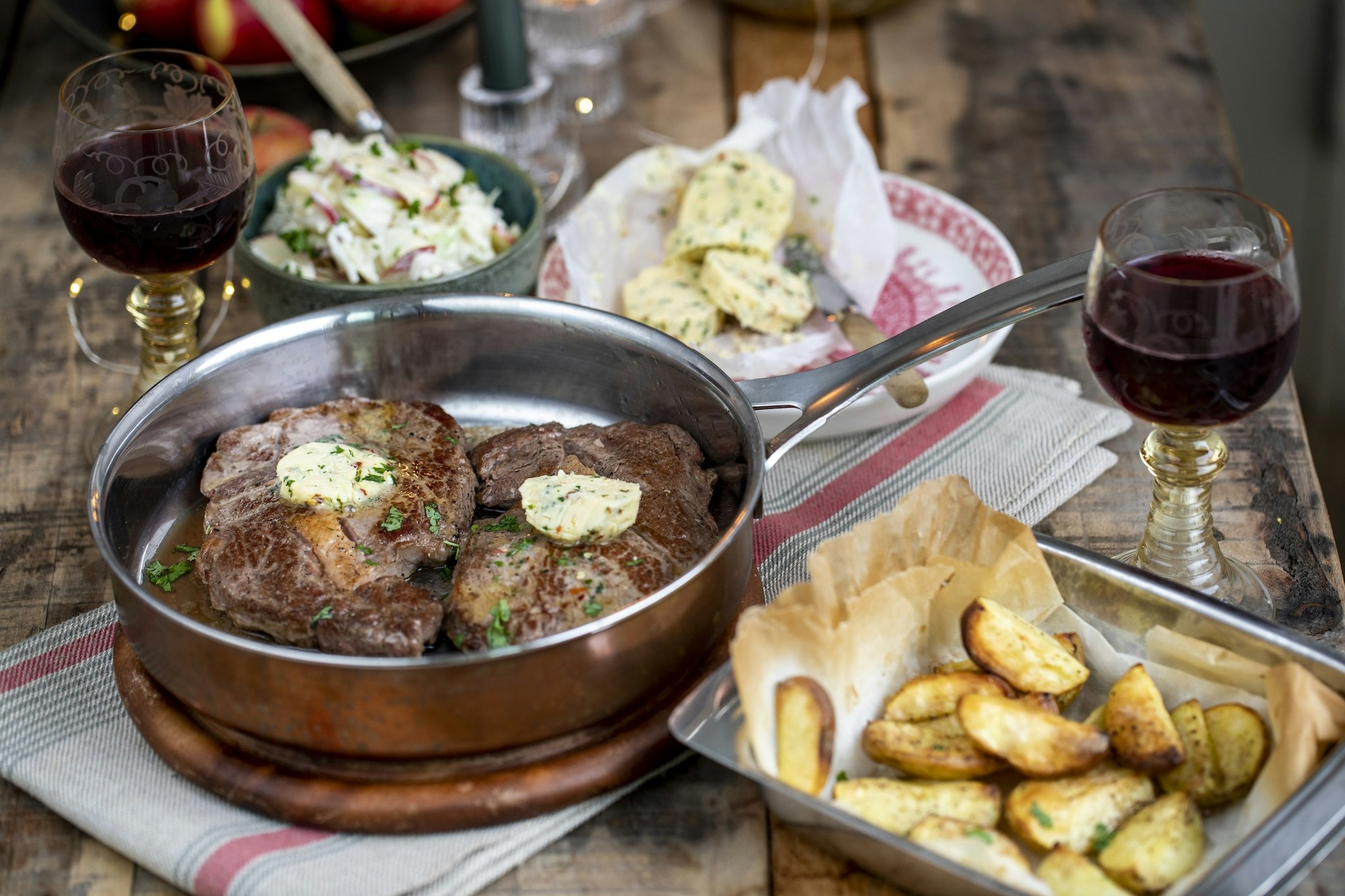 Entrecote med kryddsmör och äppelcoleslaw