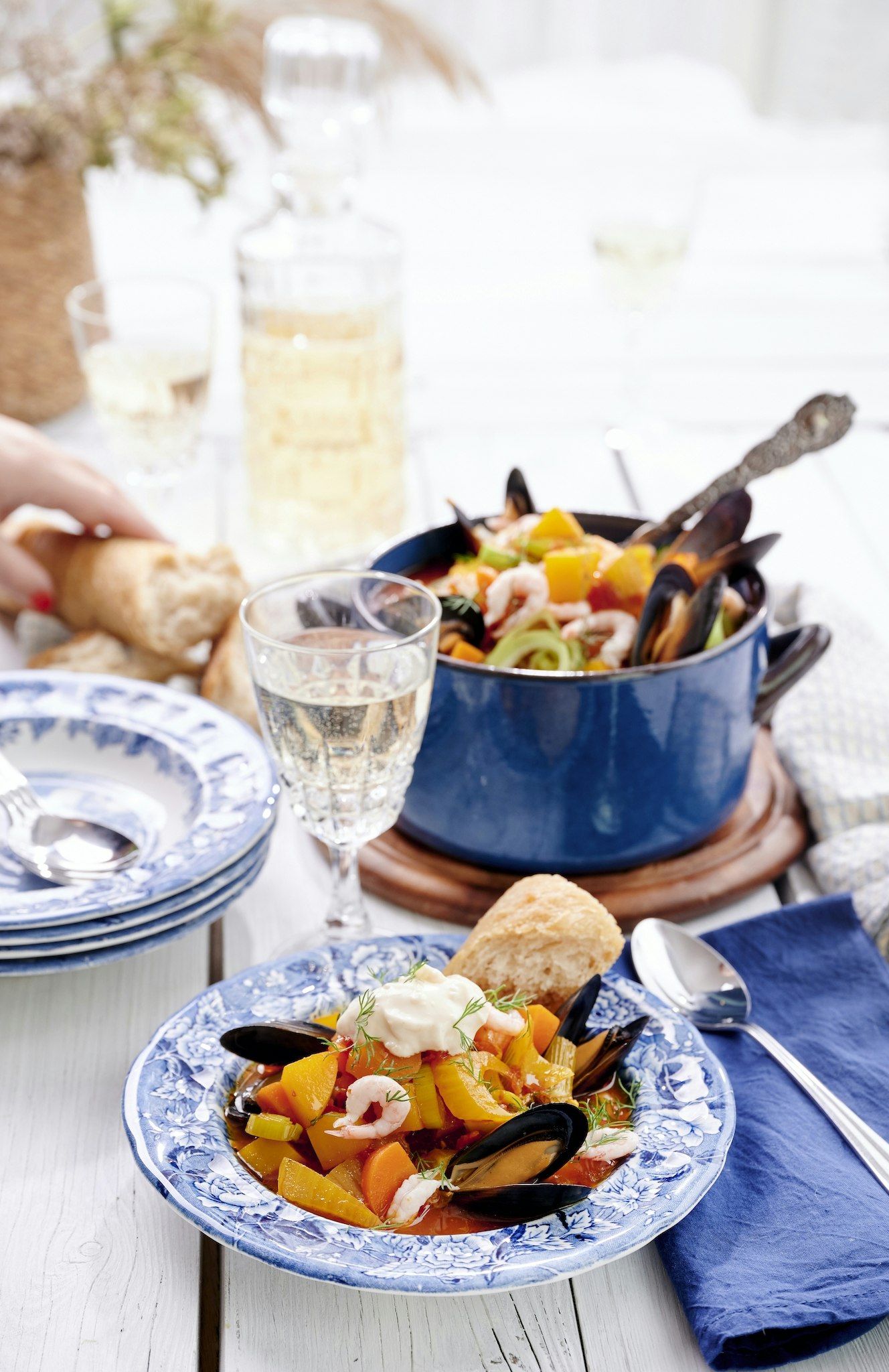 Festlig fisk- och skaldjursgryta med saffran