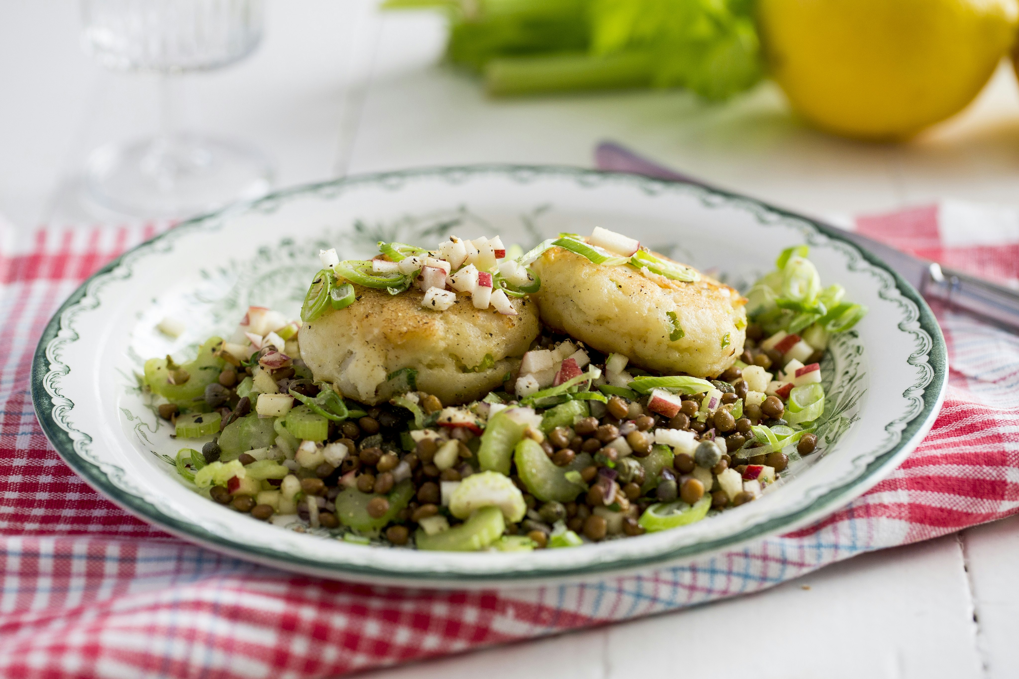 Fiskbiffar med linssallad
