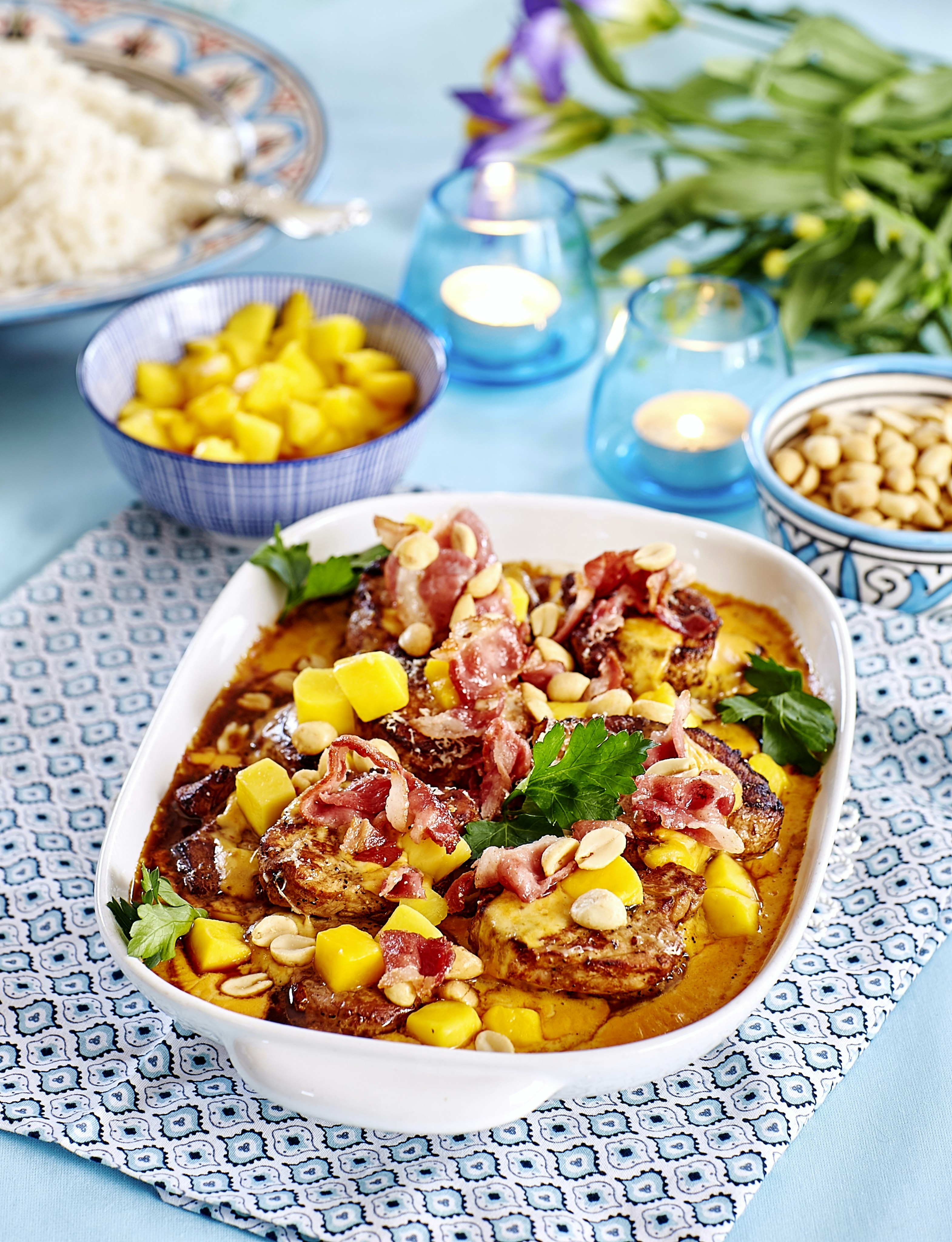 Flygande Jacob på fläskfilé, mango och jordnötter