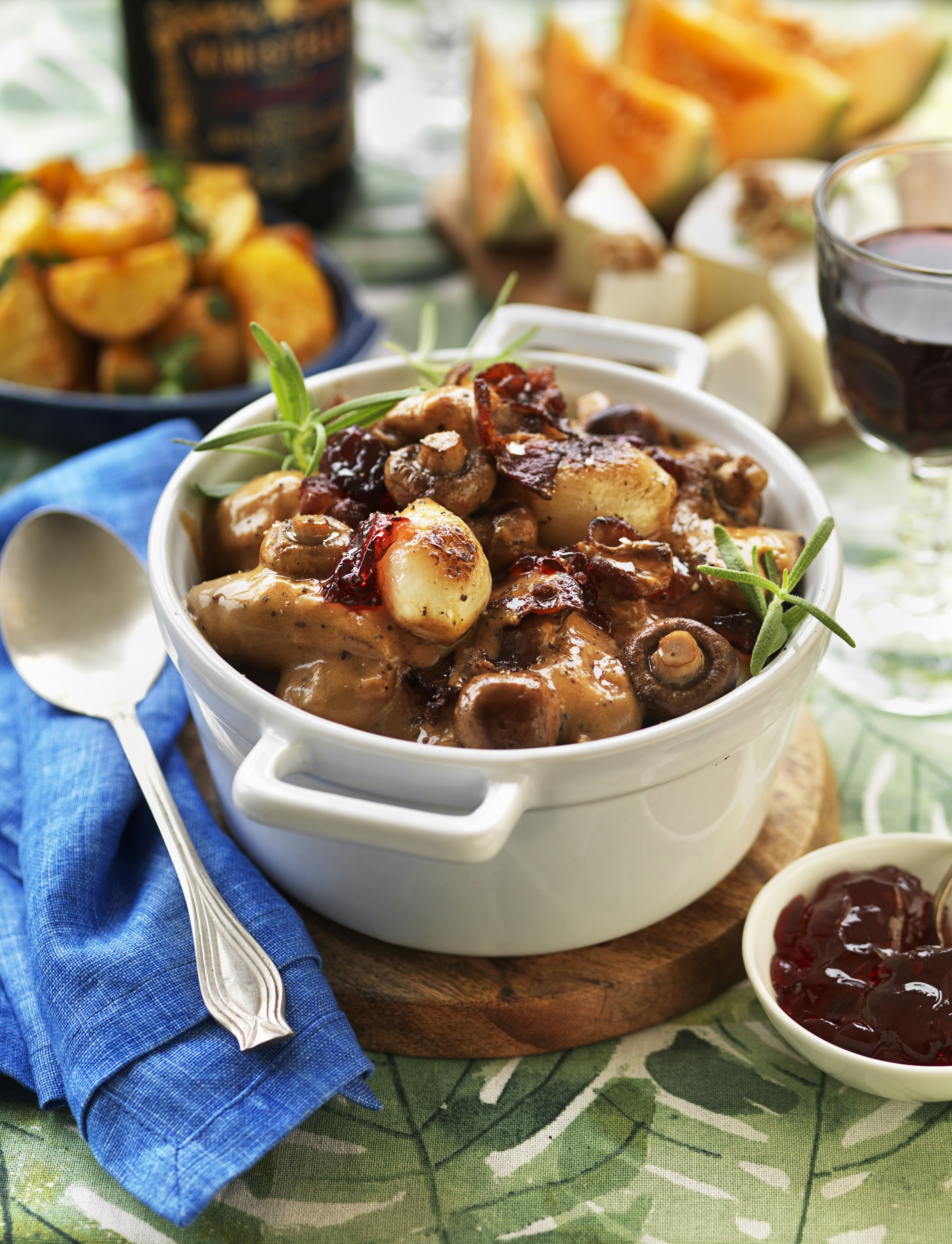 Fransk kycklinggryta med svamp och bacon
