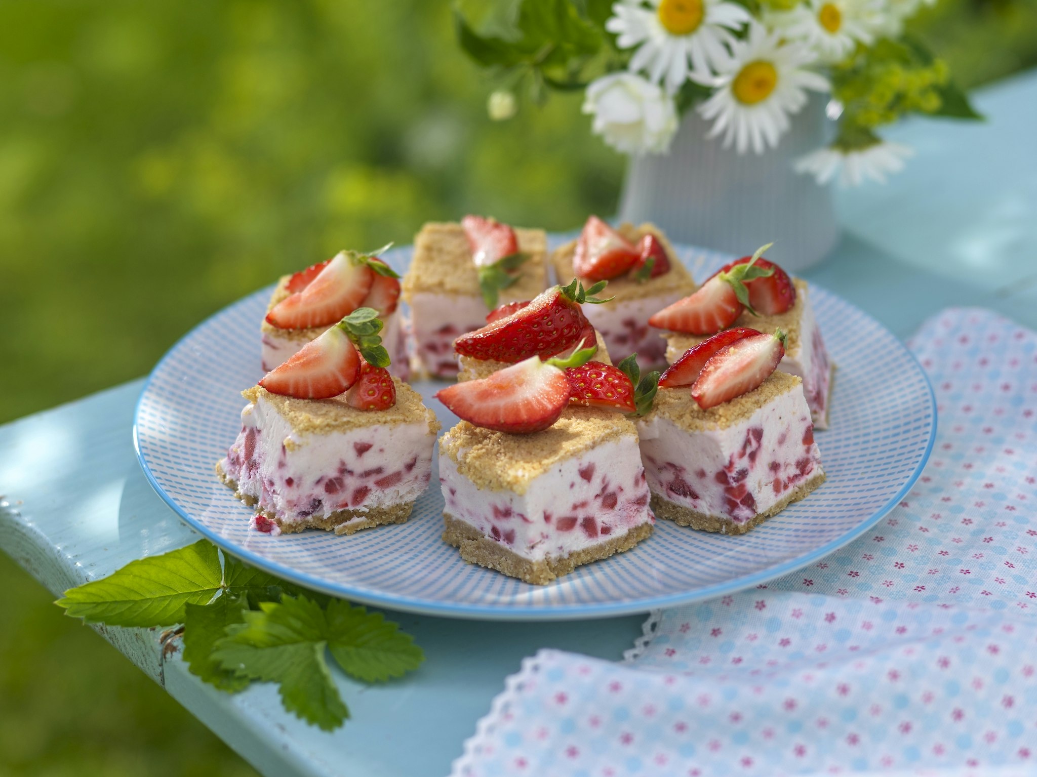 Fryst cheesecake med jordgubbar
