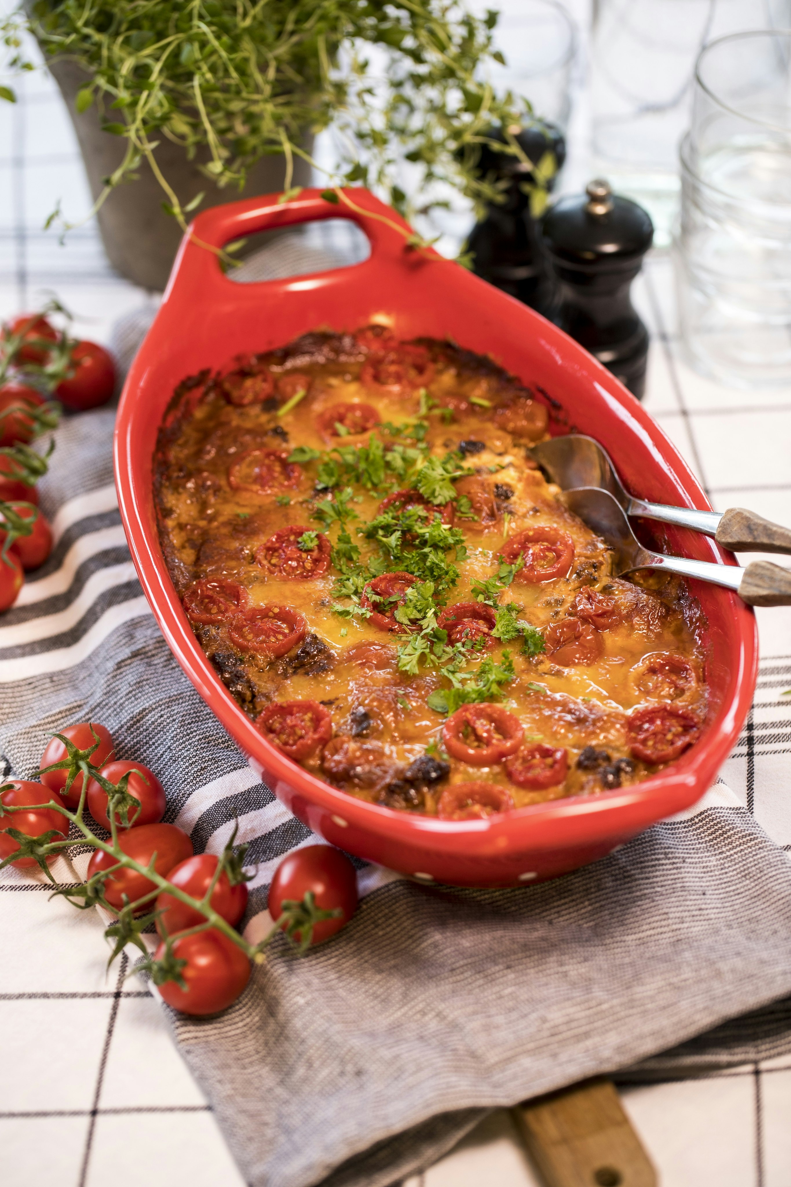 Gratäng med vegofärs, tomat och mozzarella