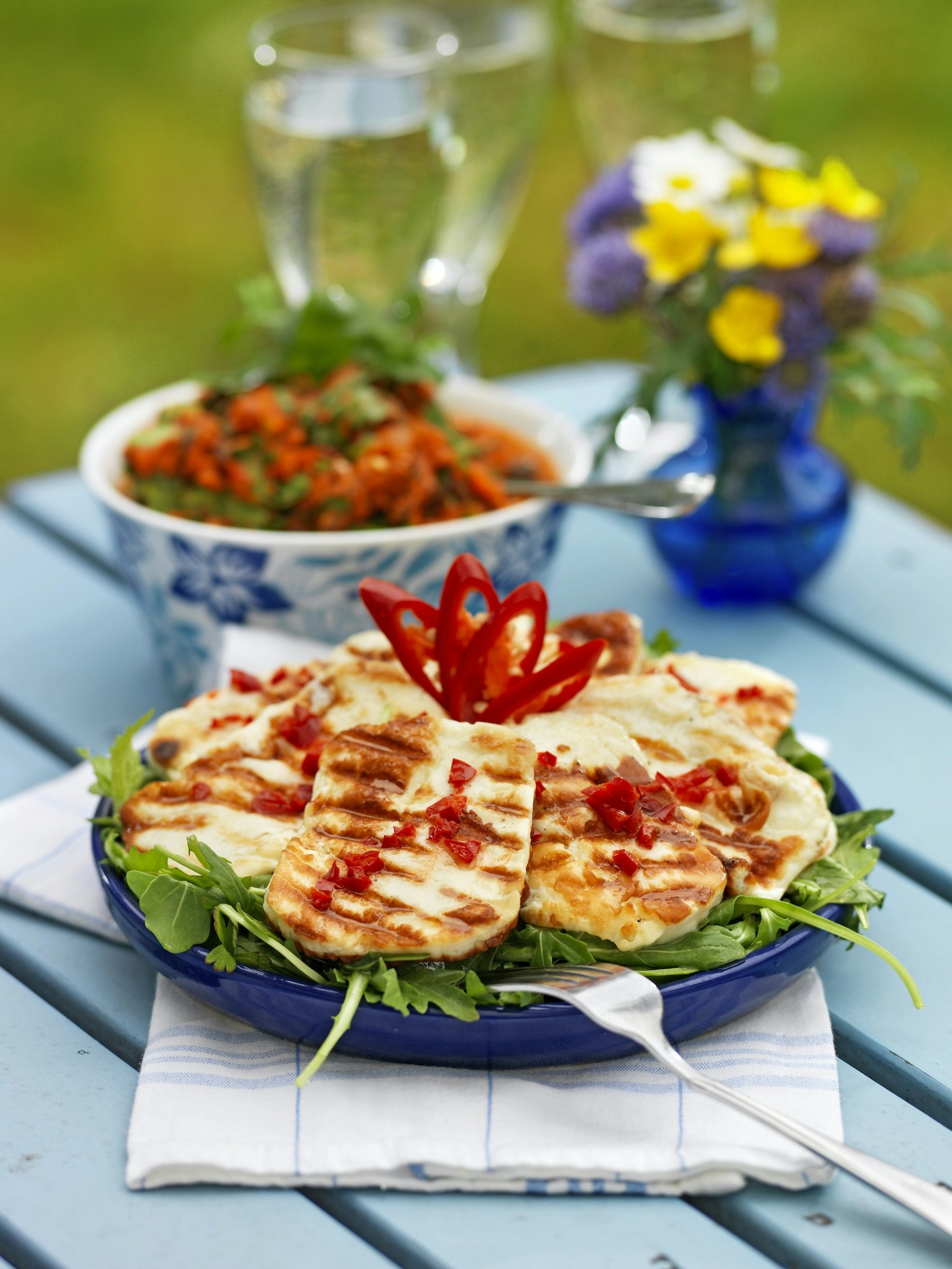 Grillad halloumi med vitlök och chili