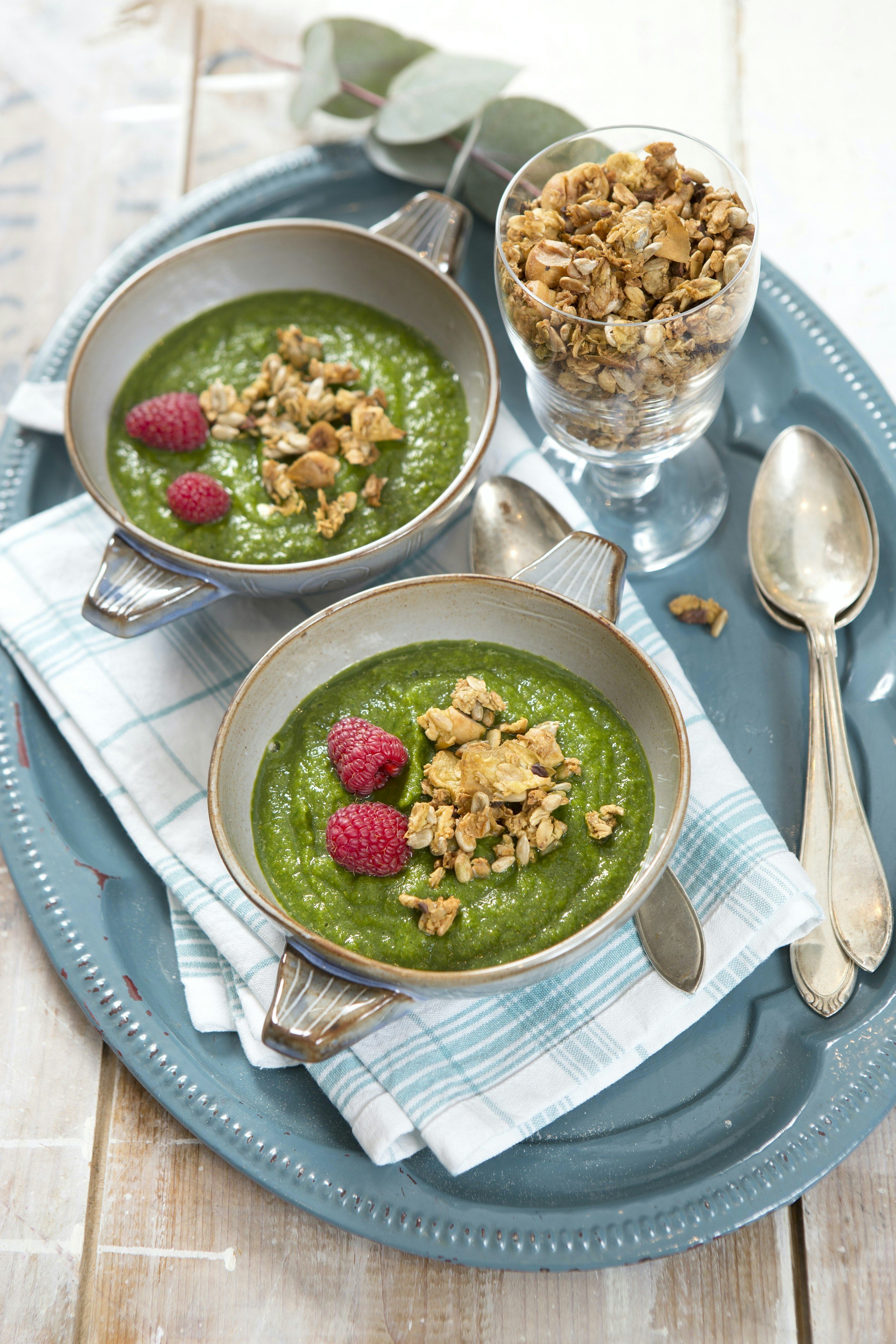 Grön smoothiebowl med gröna blad och ingefära