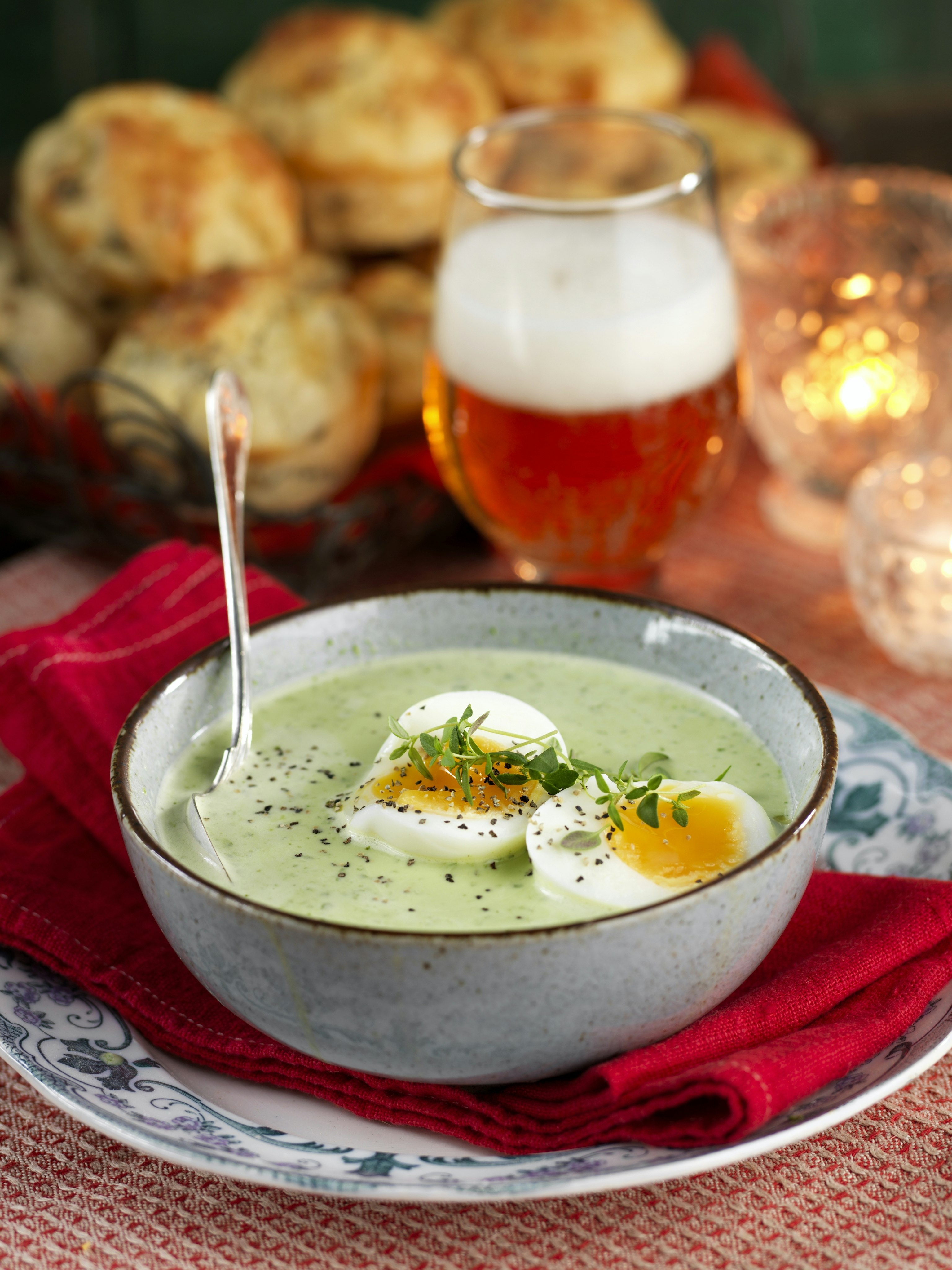 Grönkålssoppa med ägghalvor