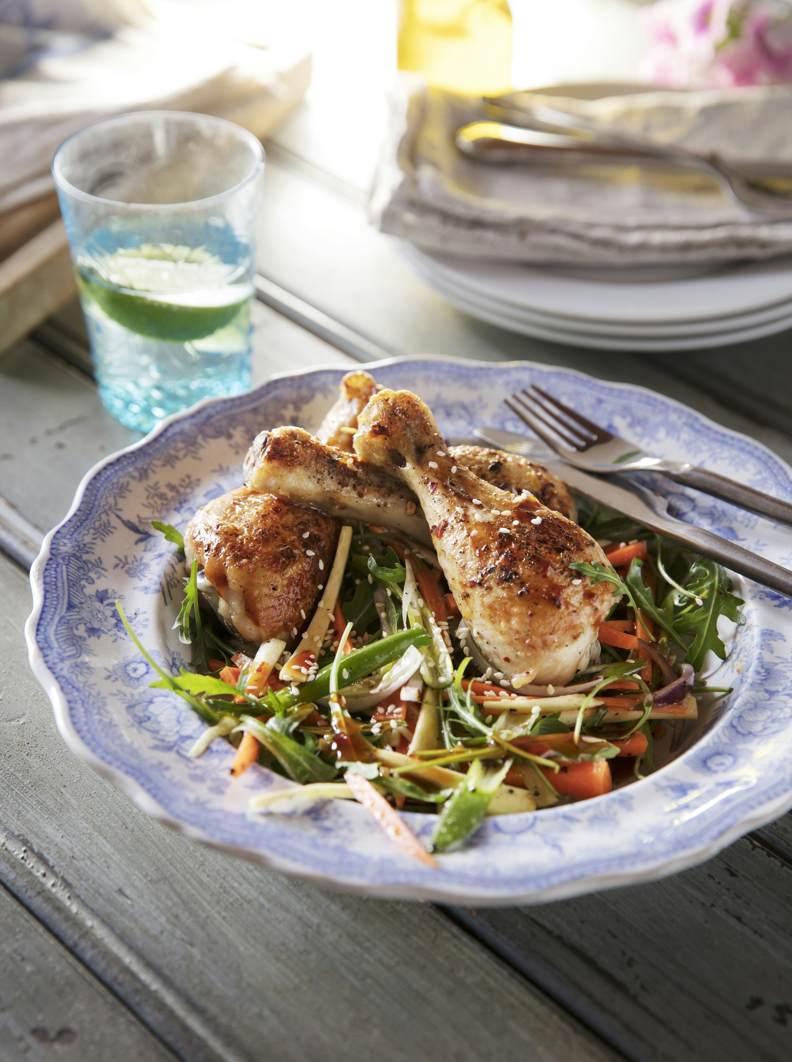 Heta kycklingben med strimlade vårgrönsaker