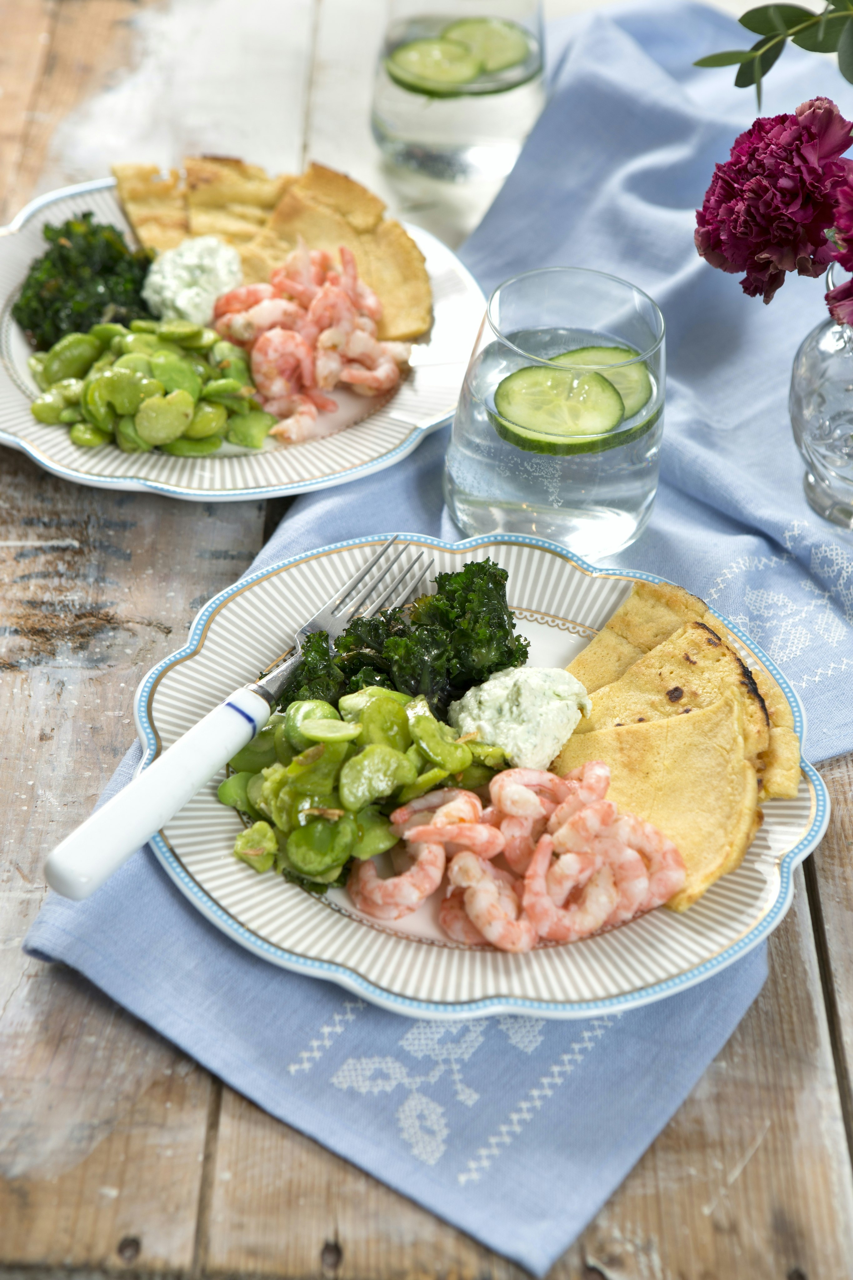 Kikärtspannkakor med räkor, bondbönor och kesoröra