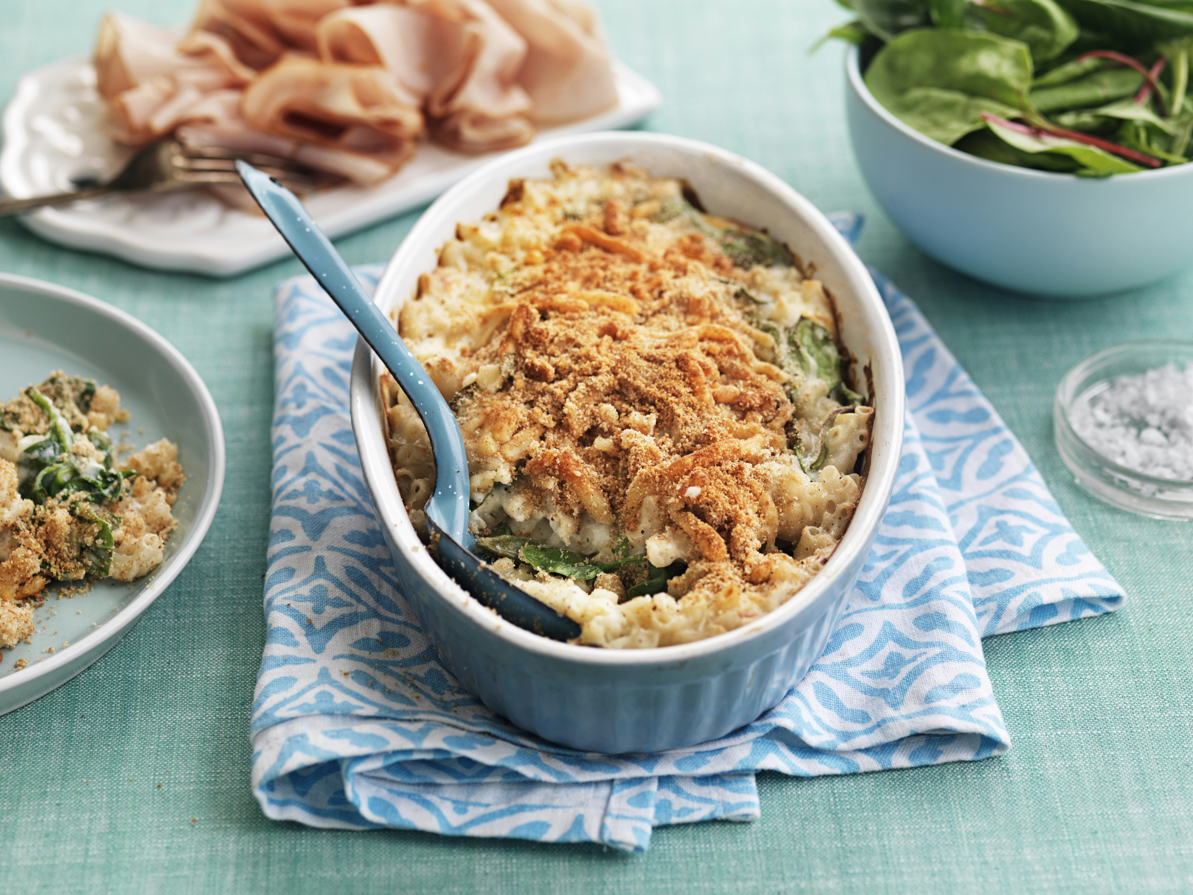 Krämig makaronilåda med spenat och ost