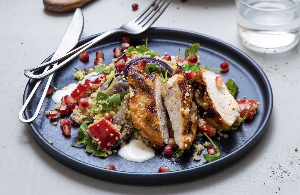 Kyckling med couscoussallad och granatäpple