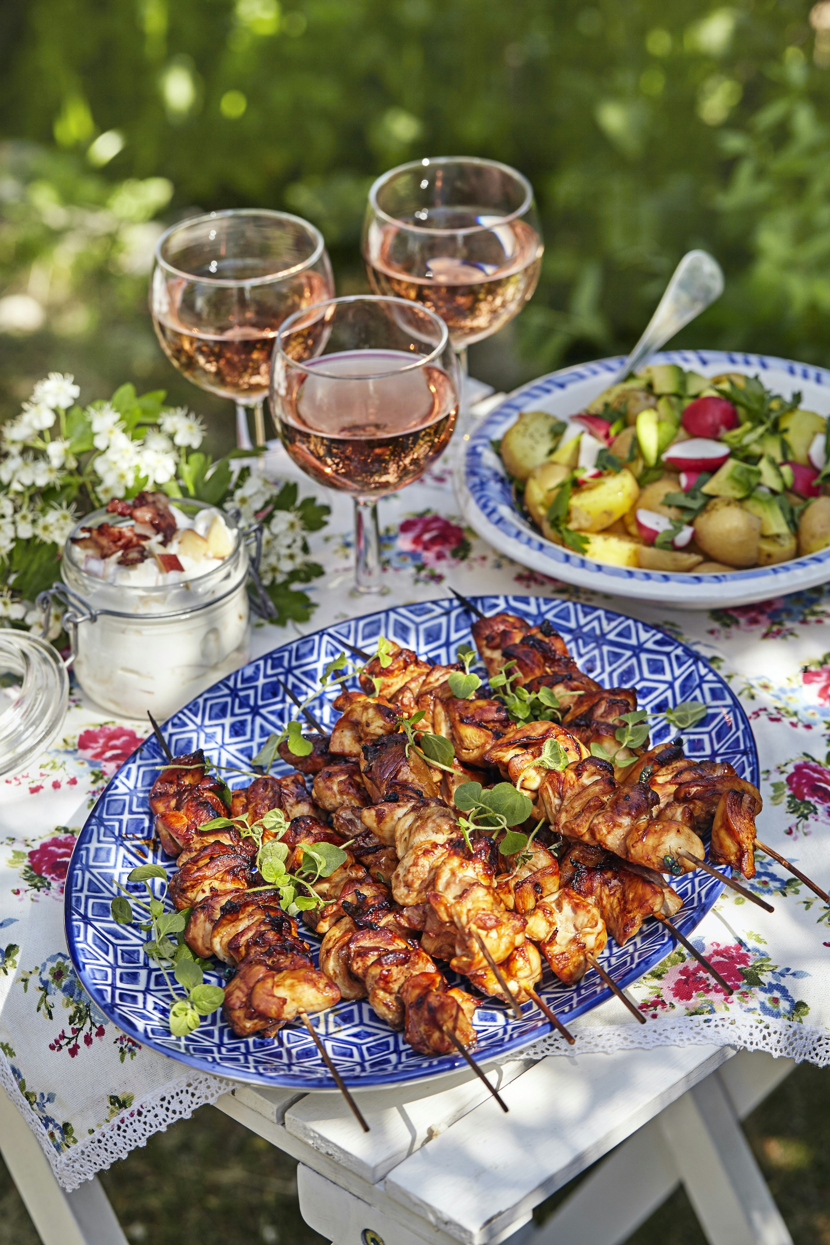 Kycklingspett med bacontzatziki och potatissallad