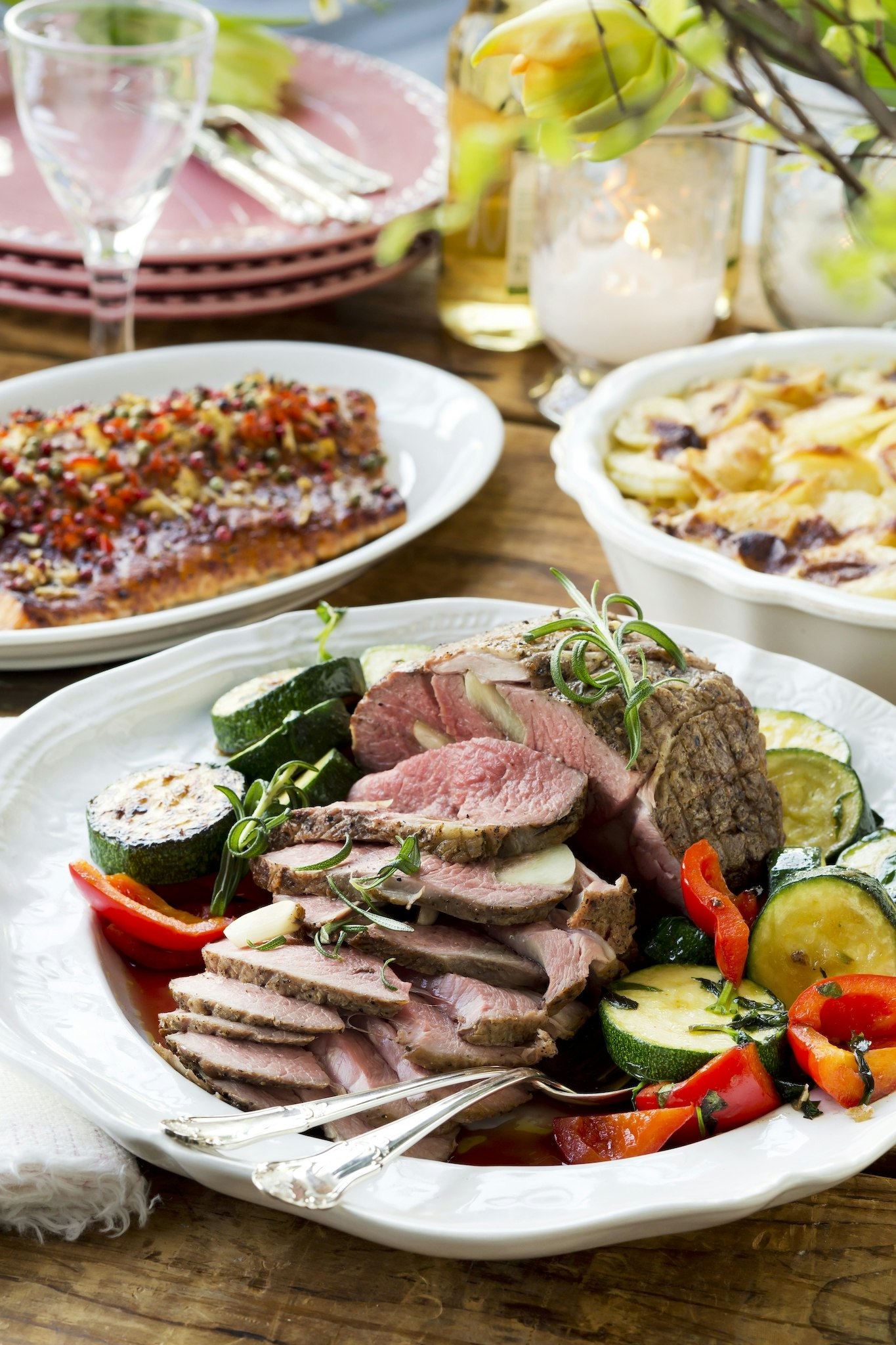 Lammstek med vitlöksstekta grönsaker