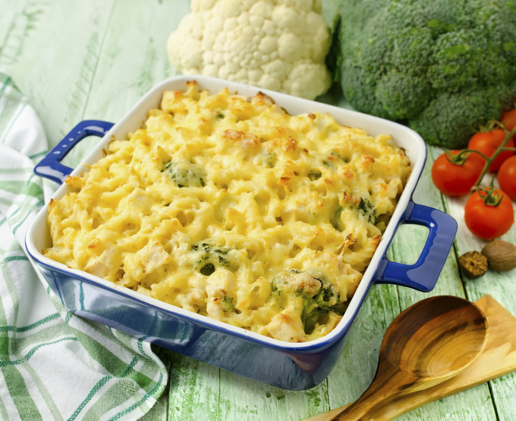 Makaronigratäng med mycket grönt