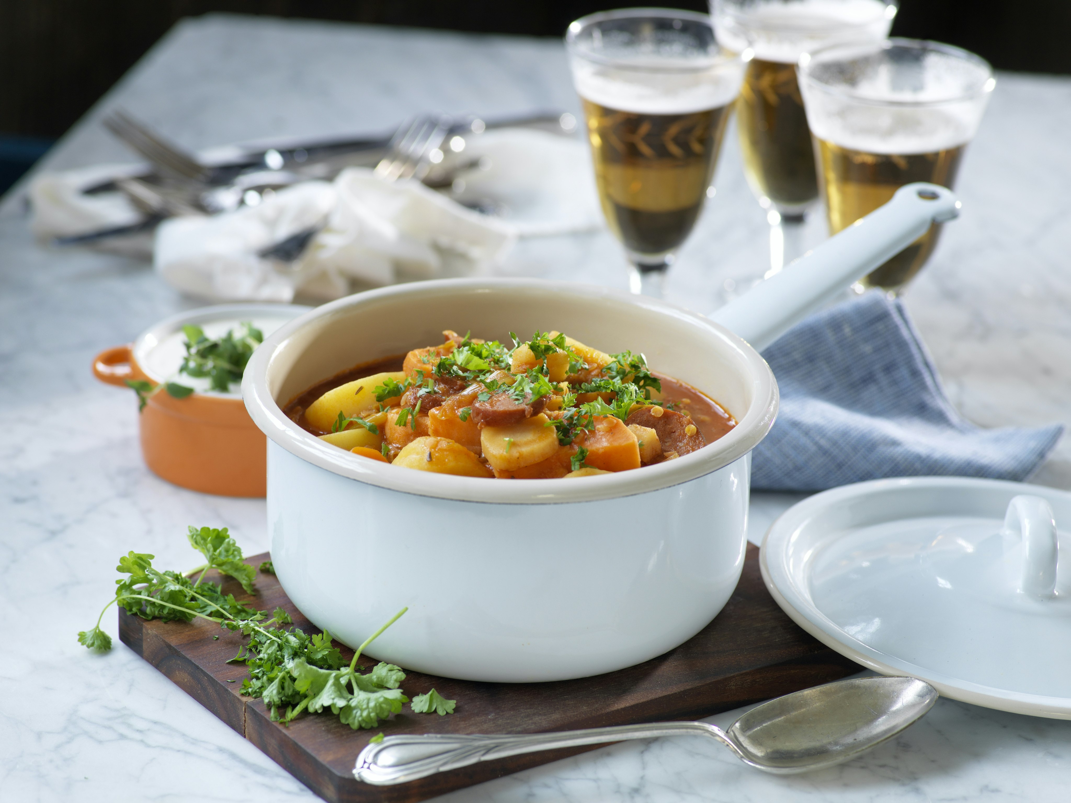 Marockansk rotfruktsgryta med linser och chorizo