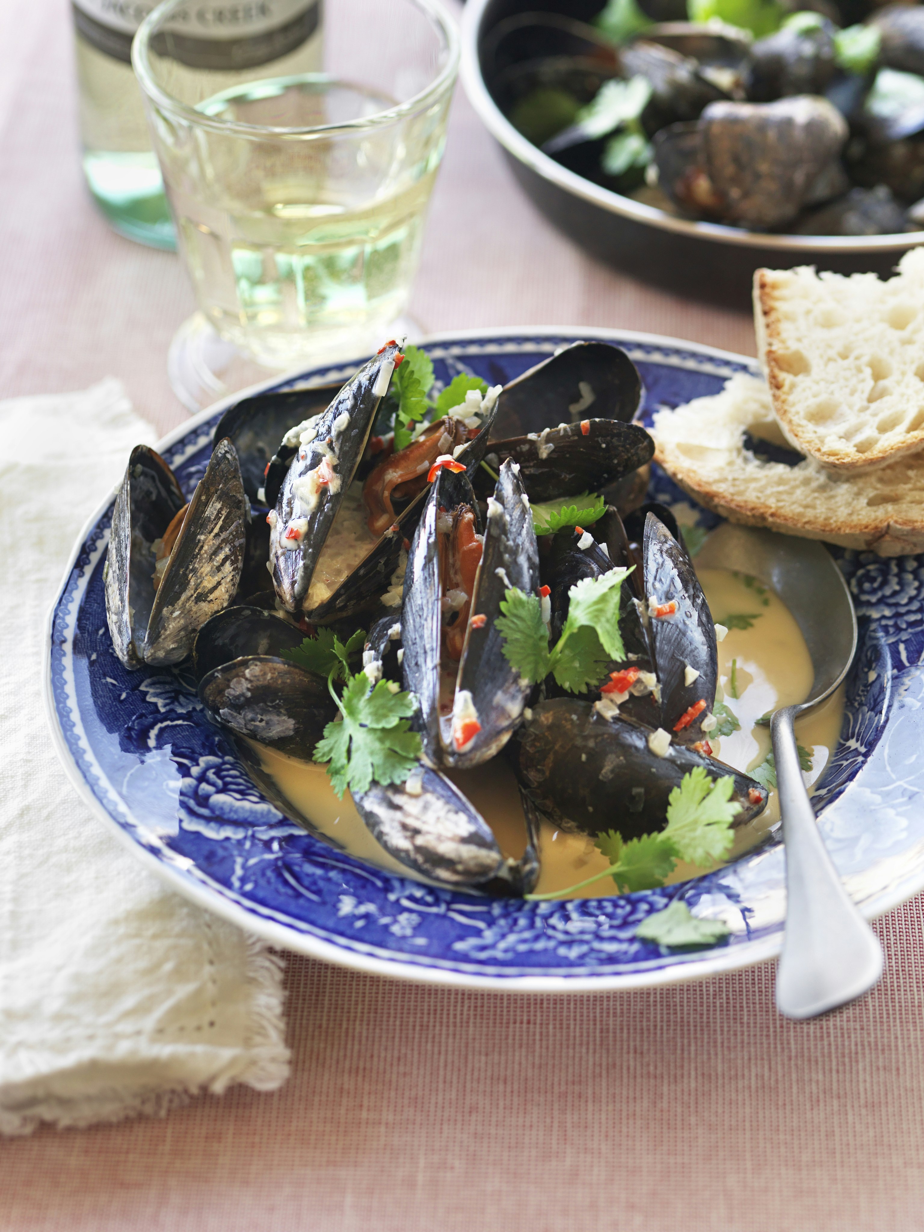 Musslor i het vitvinssås