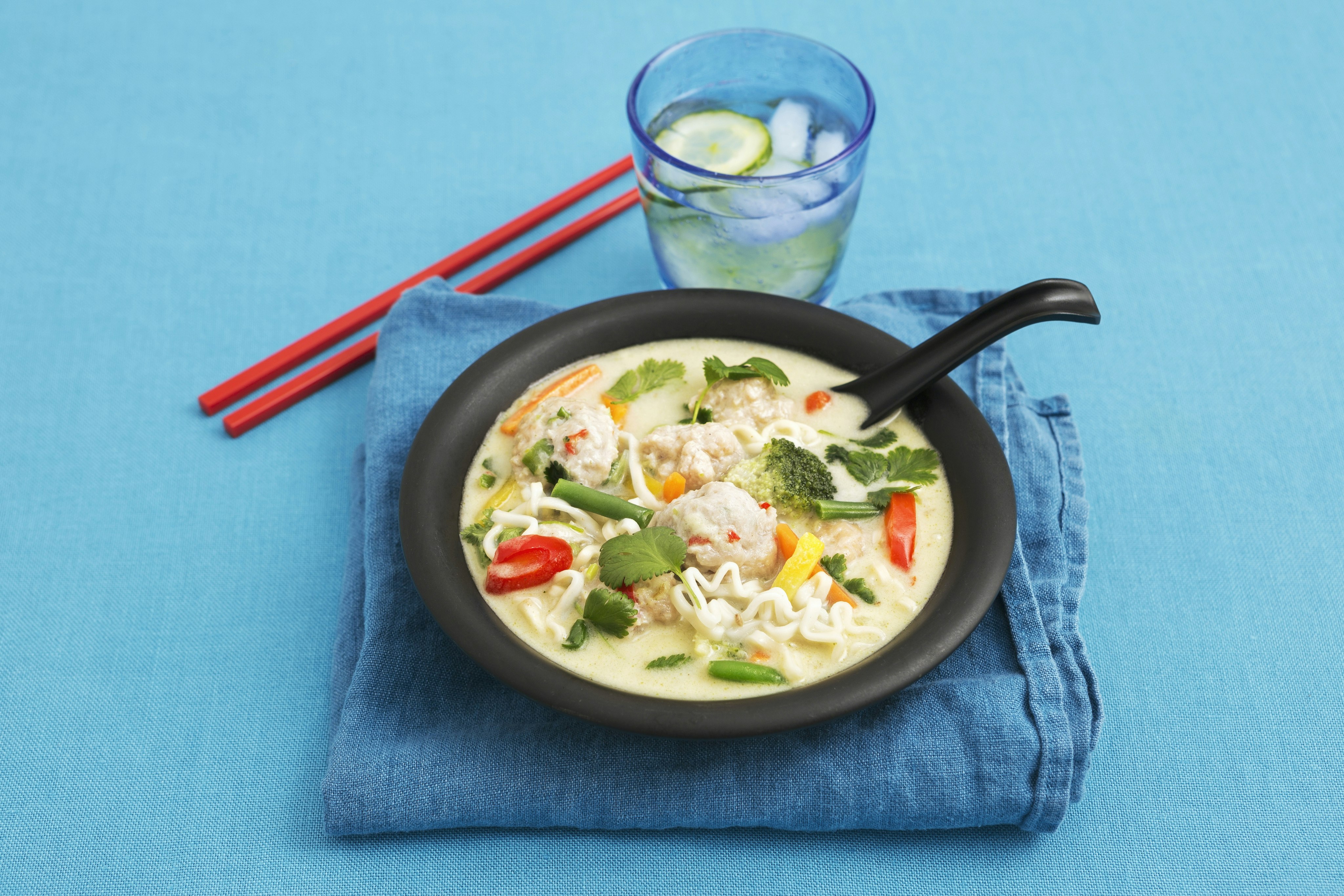 Nudelsoppa med kycklingfrikadeller