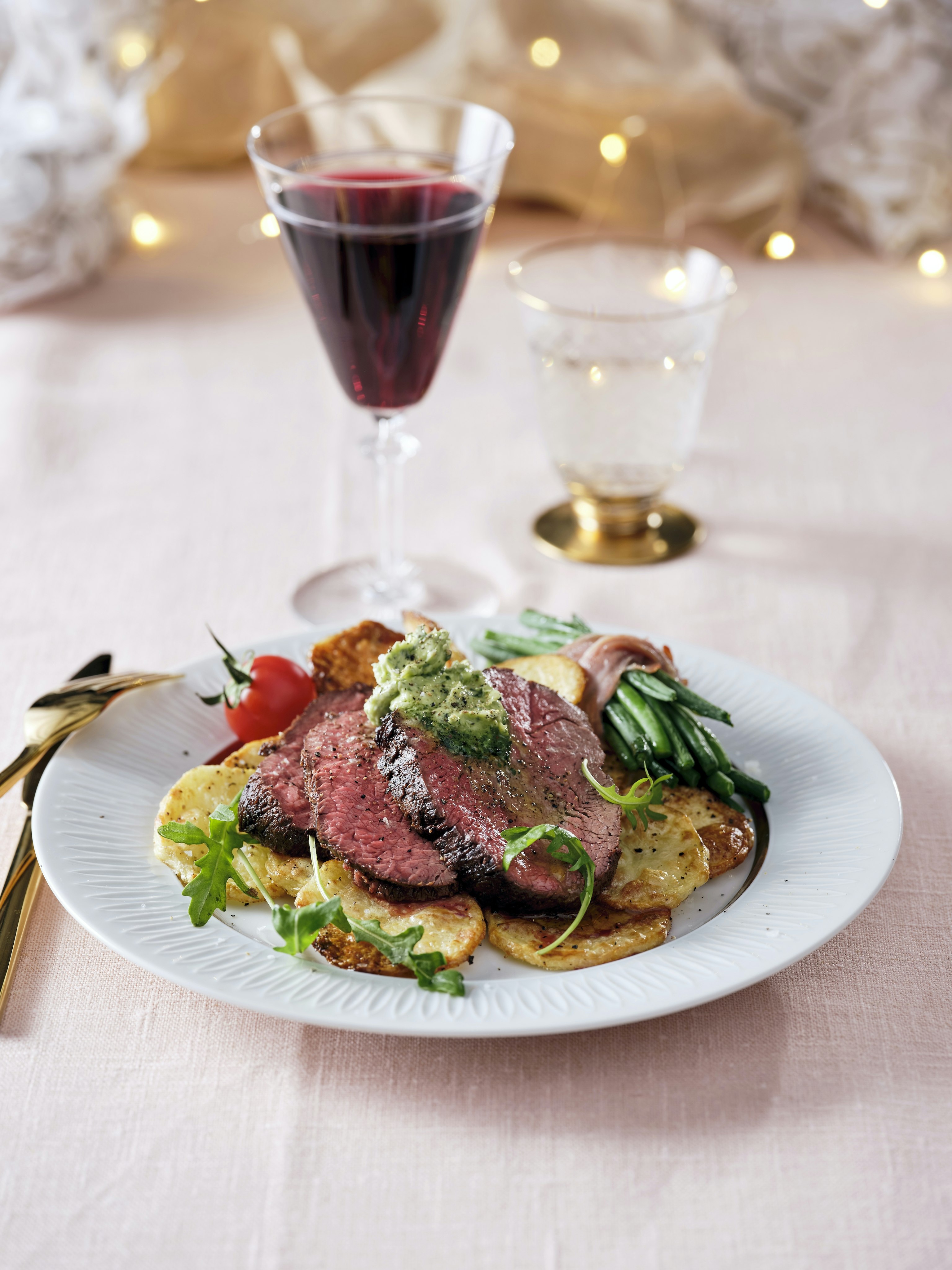 Oxfilé med örtsmör och ugnsrostad potatis
