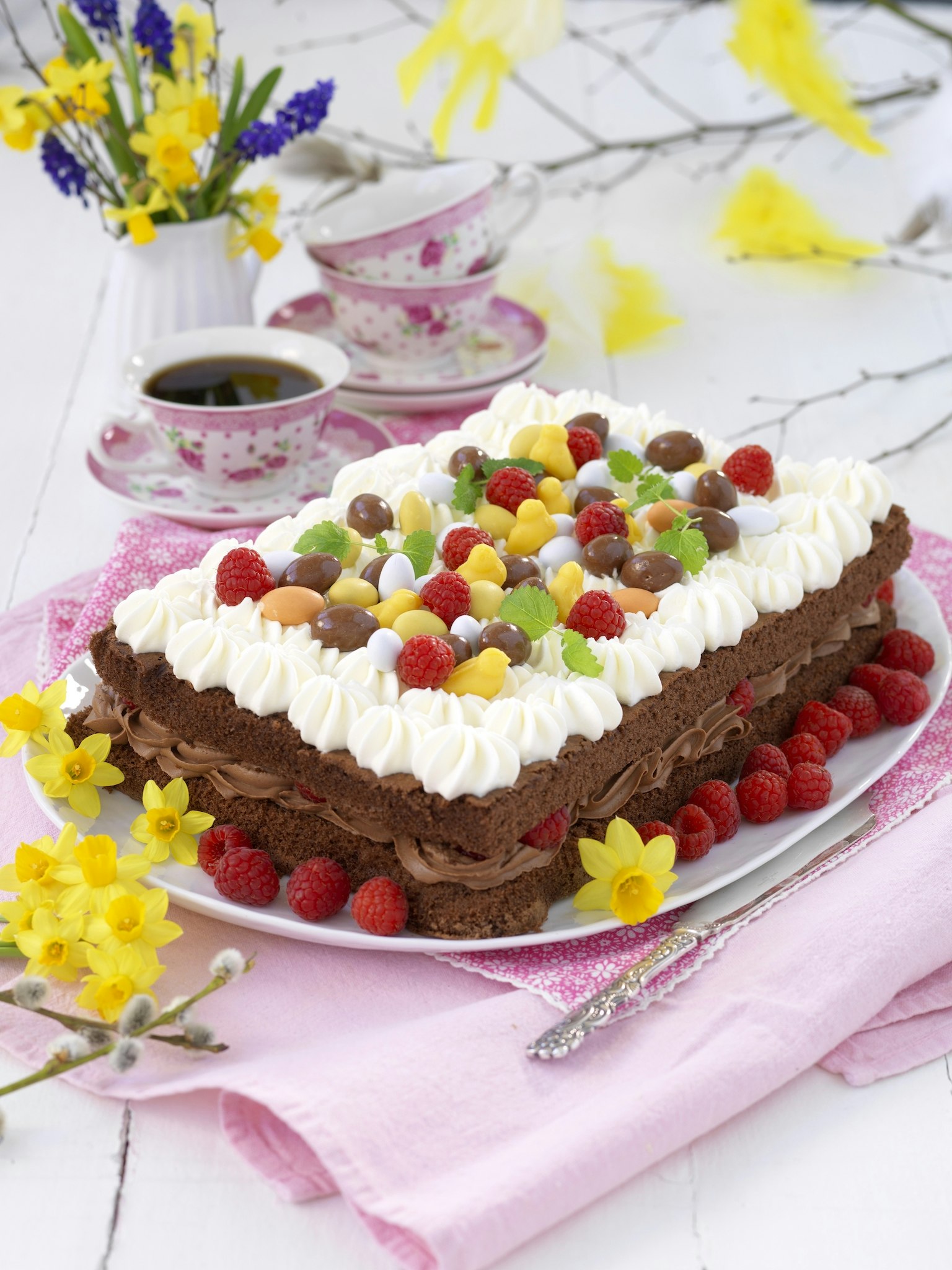 Påsktårta med hallon och choklad