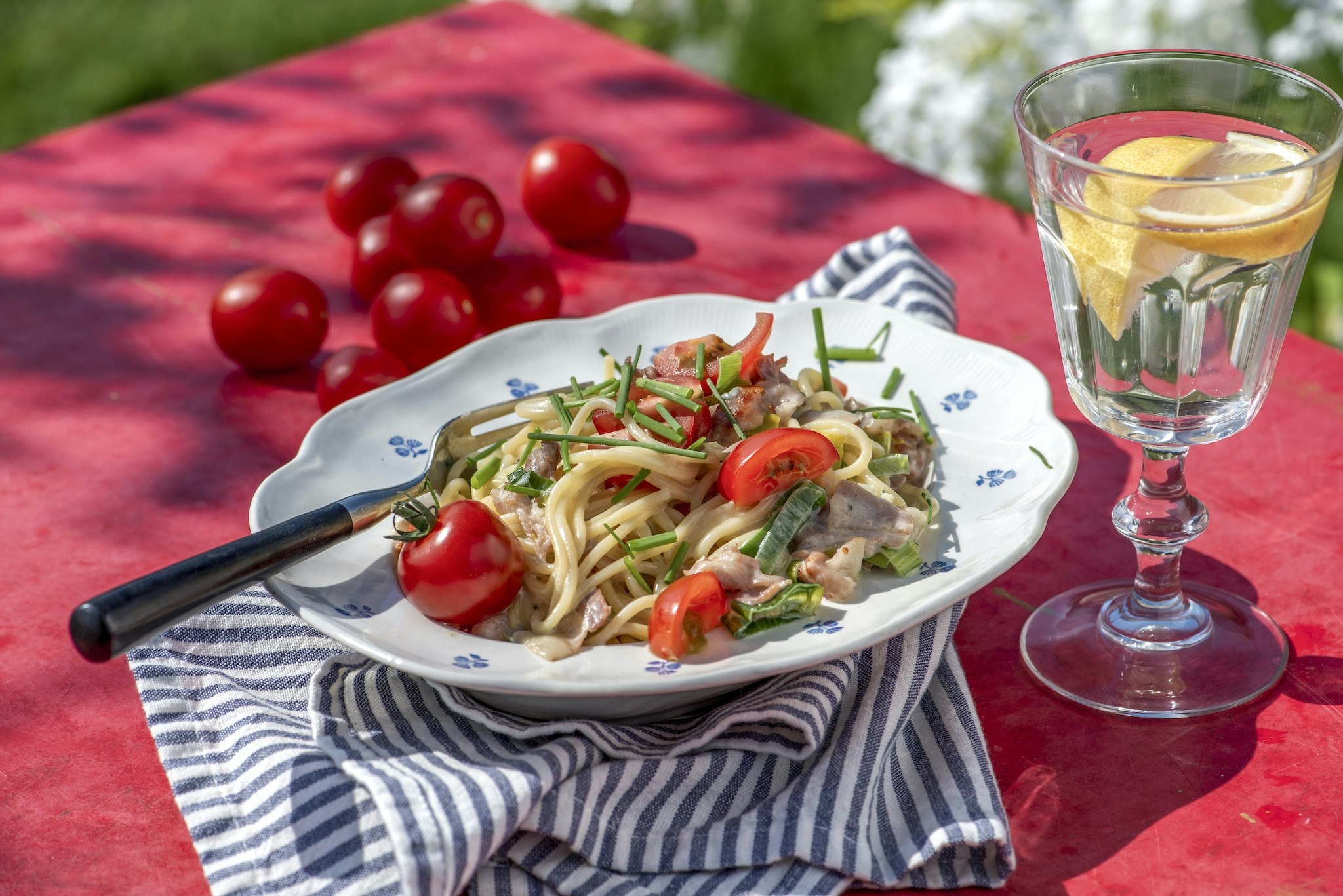 Pasta med ädelost och bacon