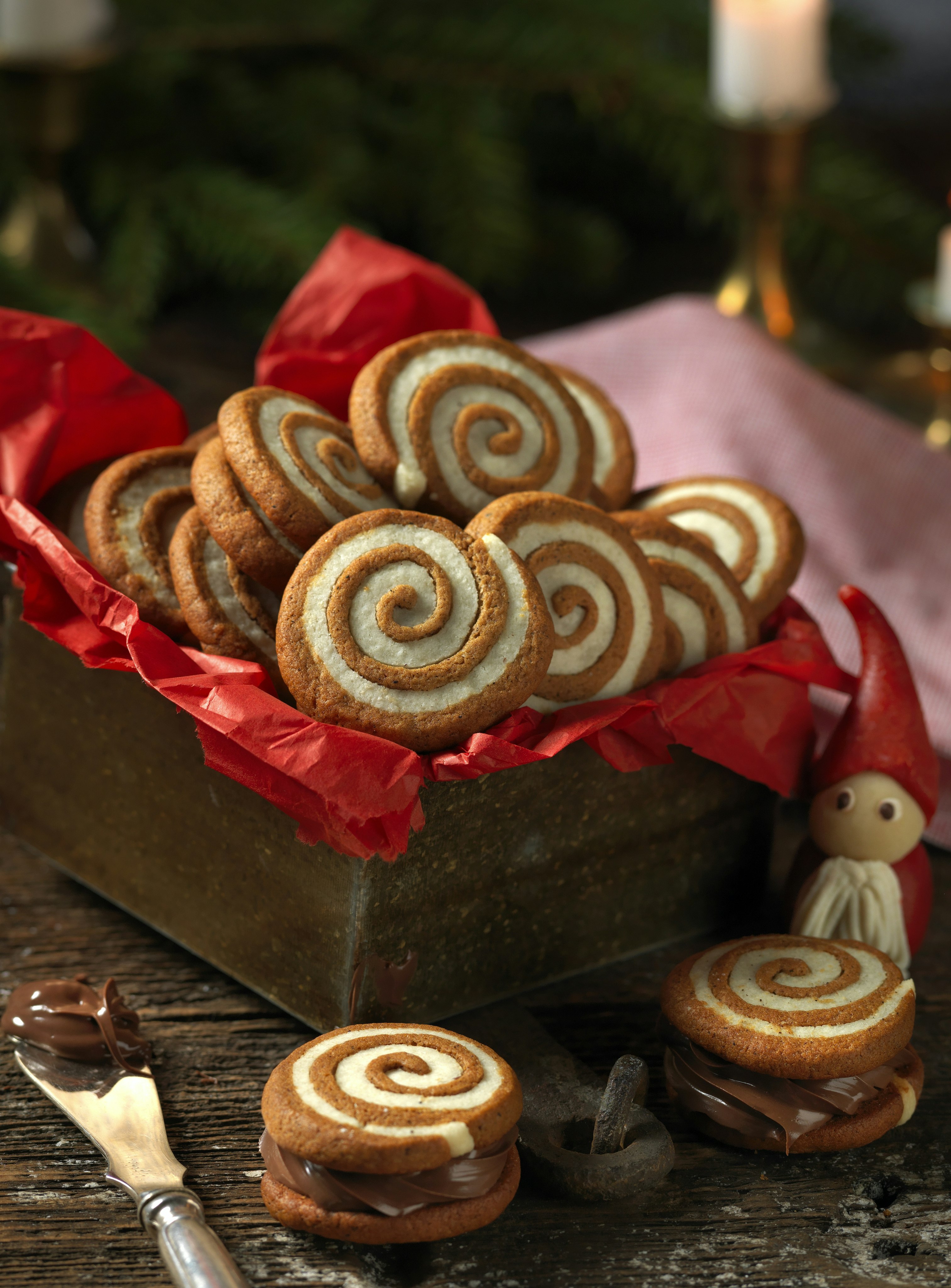 Pepparkakssnurror med mandelmassa och chokladkräm