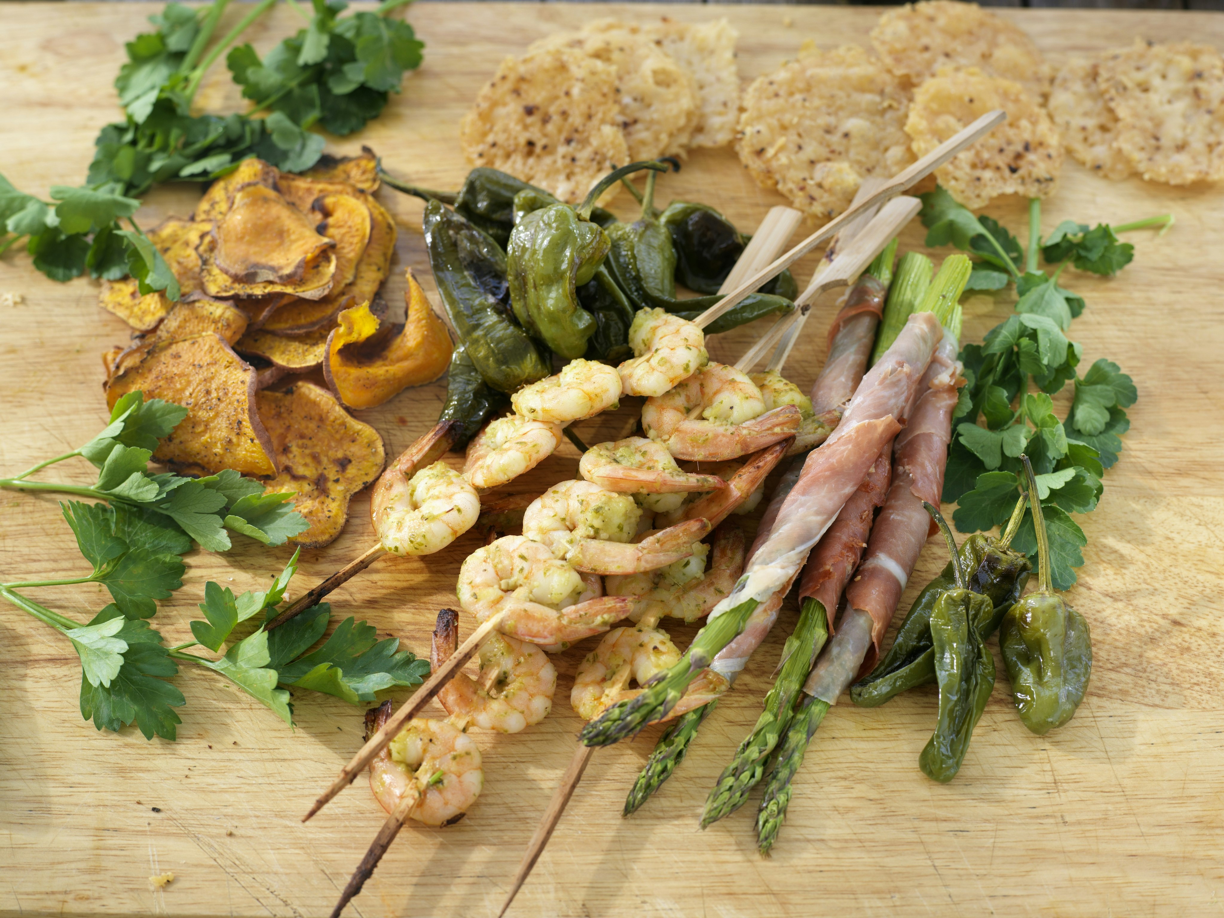 Pestogrillad scampi och parmalindad sparris