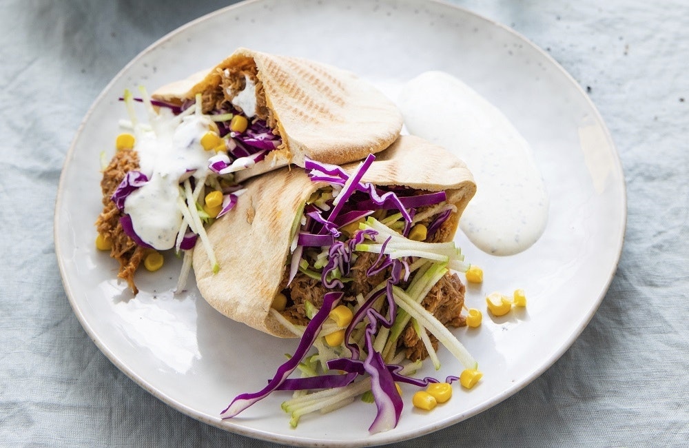 Pulled pork i pitabröd med frisk rödkålssallad