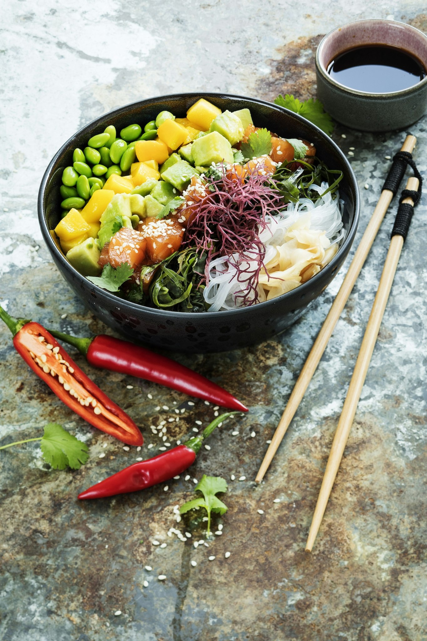 Rainbow-bowl med sojamarinerad lax