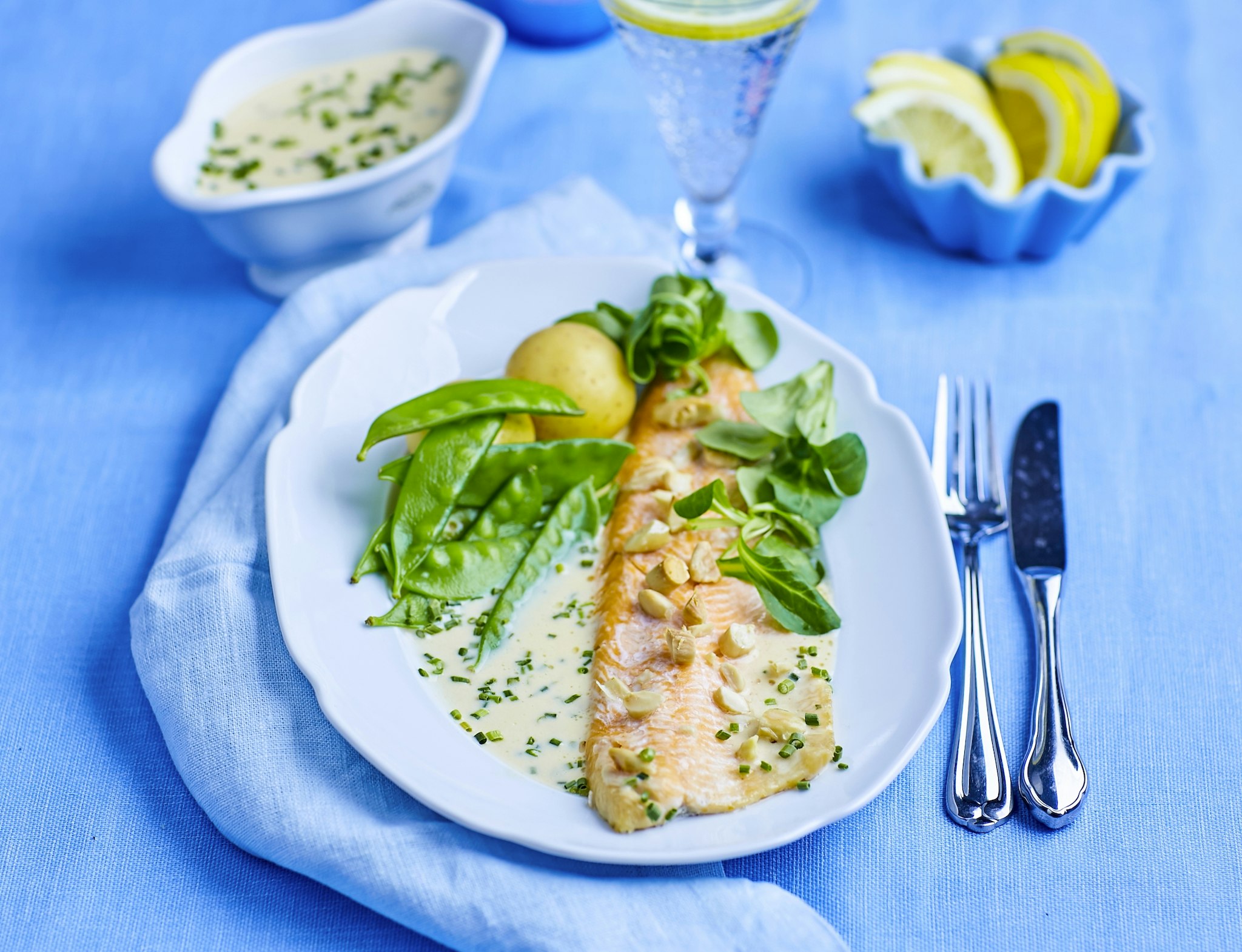 Röding med mandel och gräslökssås