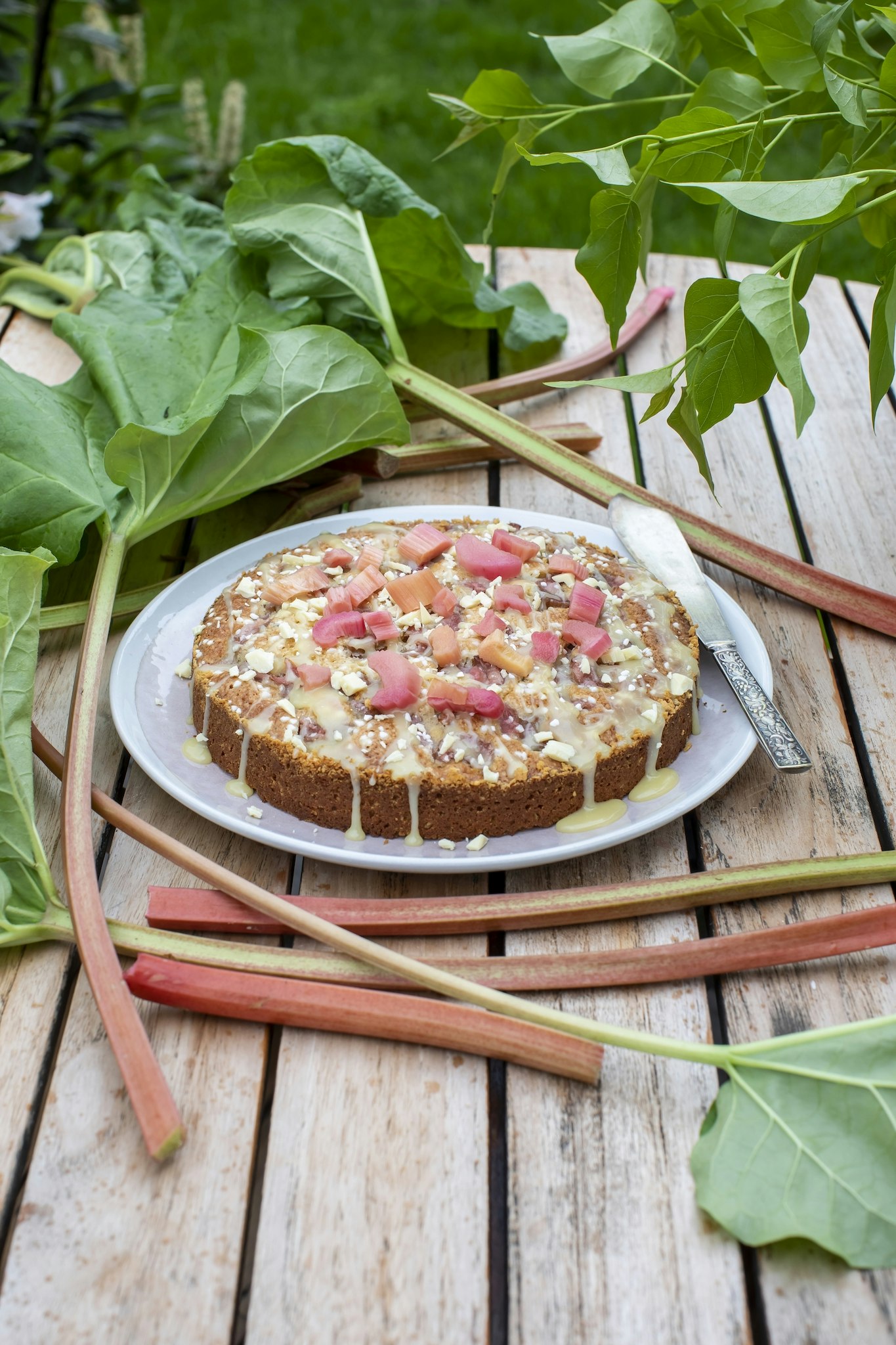 Rör-ihop-kaka med rabarber och mandelmassa