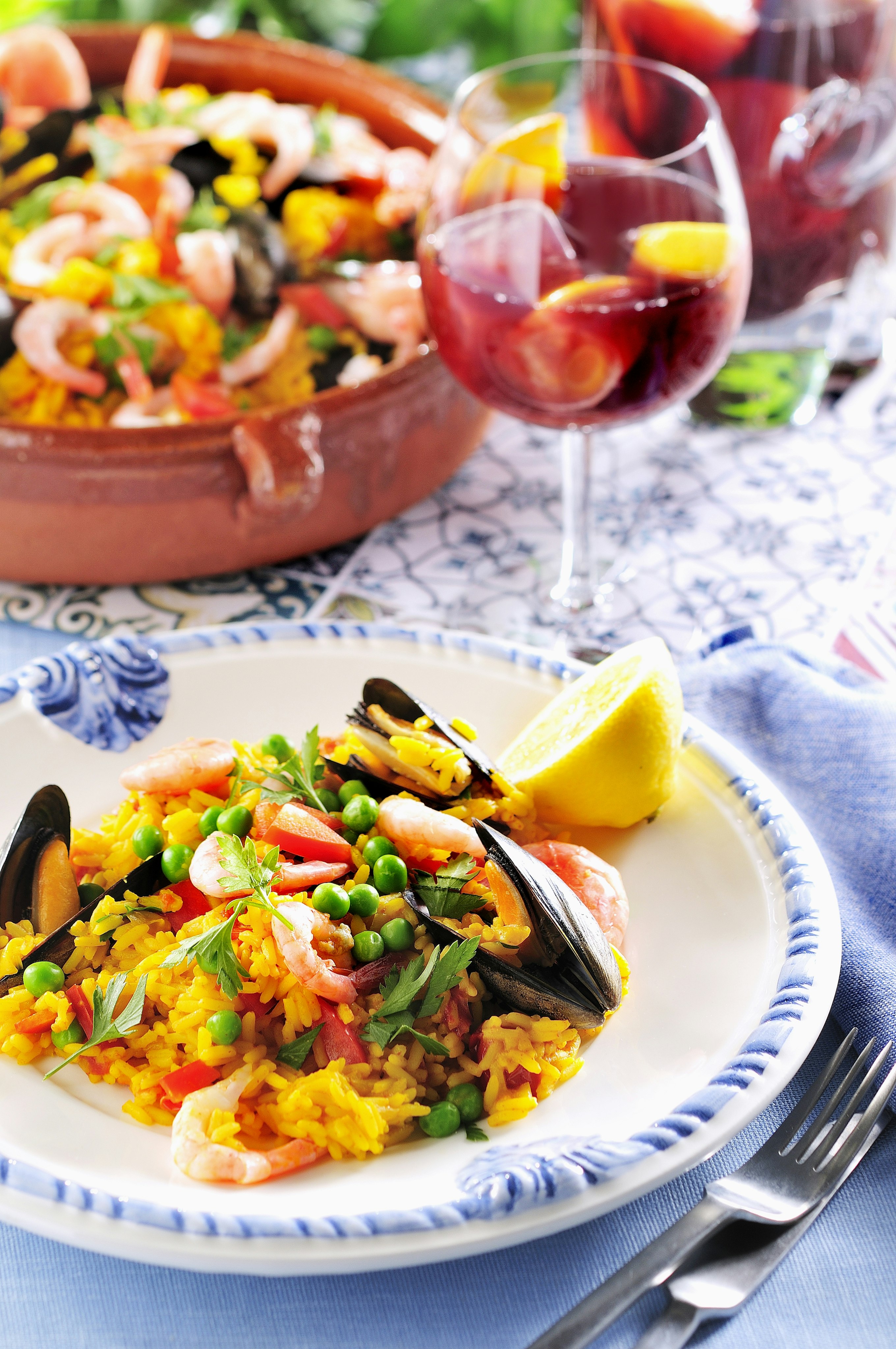 Skaldjurspaella med musslor och räkor