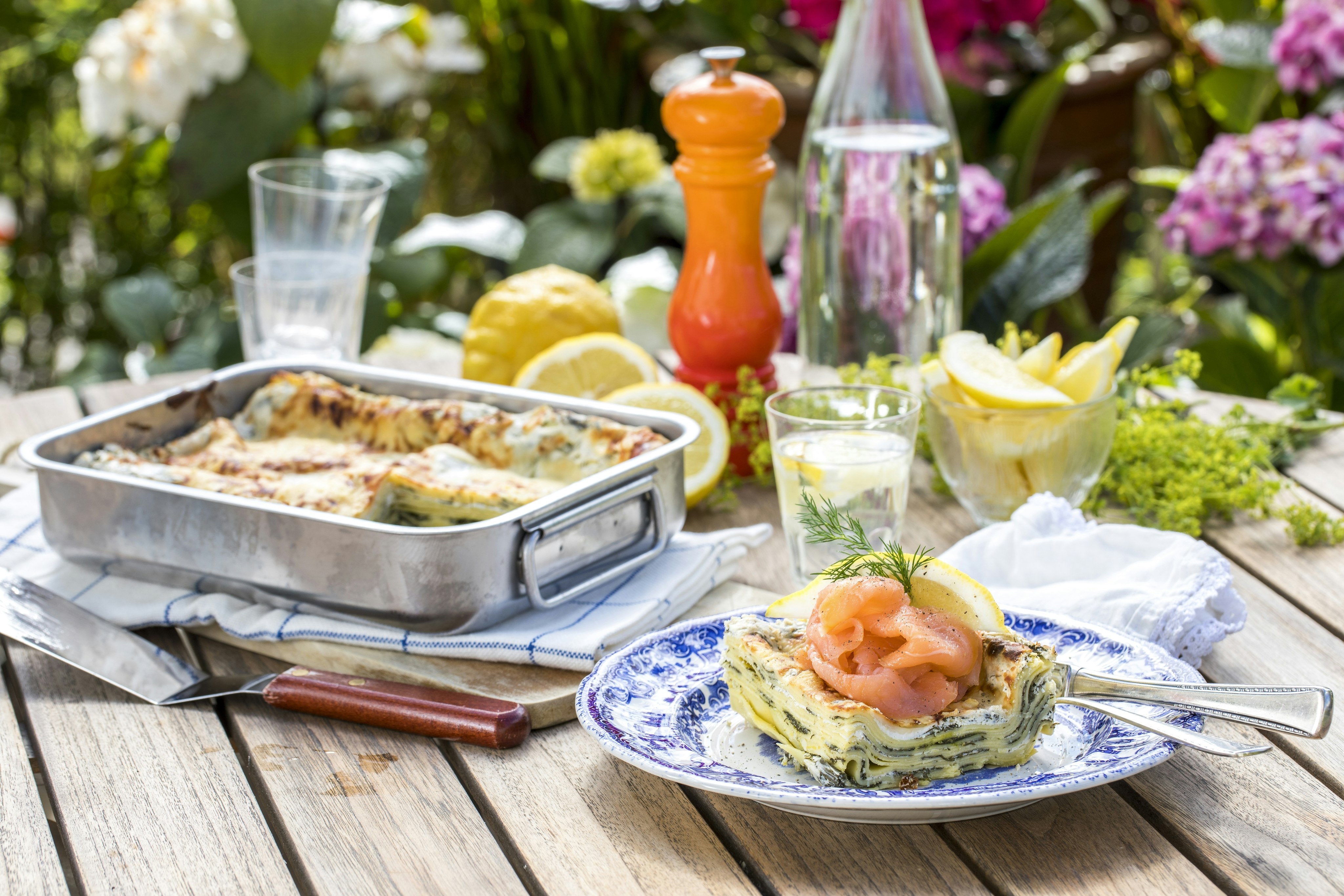 Sommarlasagne med kallrökt lax