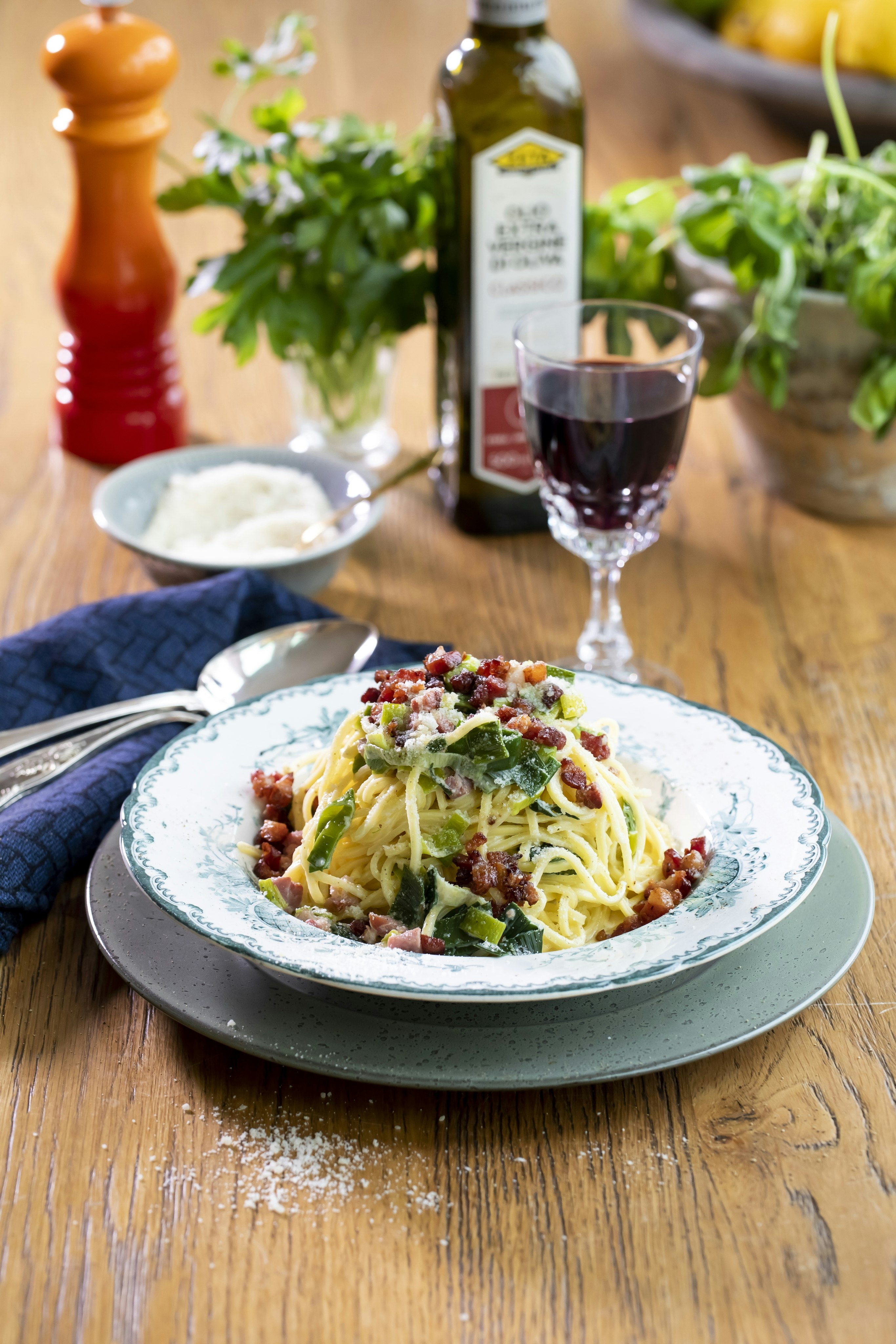 Spaghetti med bacon och parmesanost