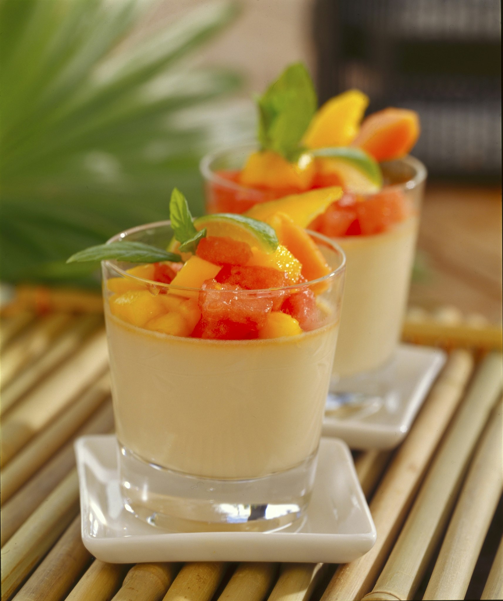 Syrlig pannacotta med exotisk fruktsallad