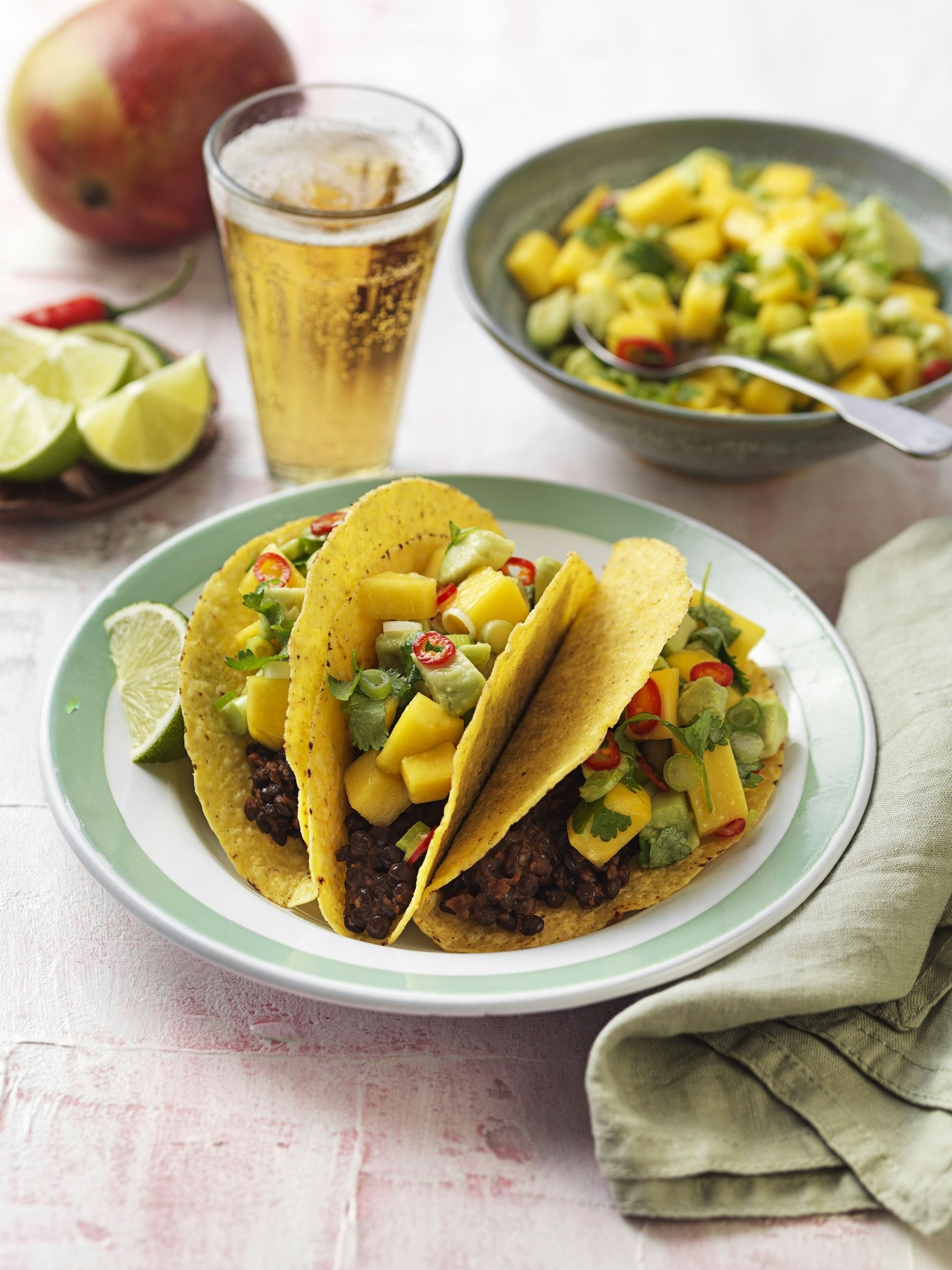 Taco med belugalinser och mangosalsa