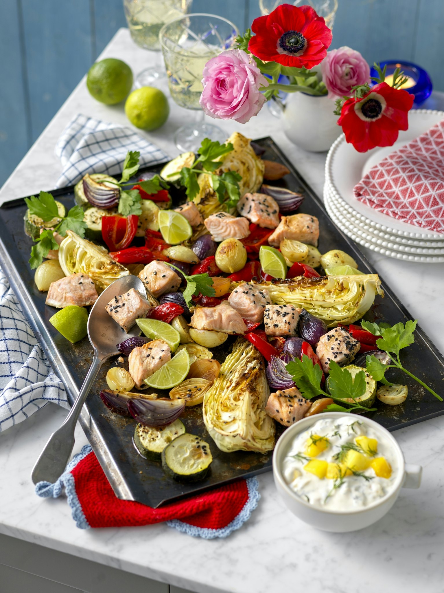 Ugnsbakad lax med kål och lök