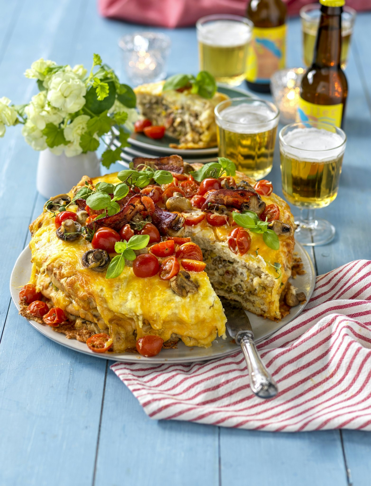 Varm smörgåstårta med köttfärs och bacon