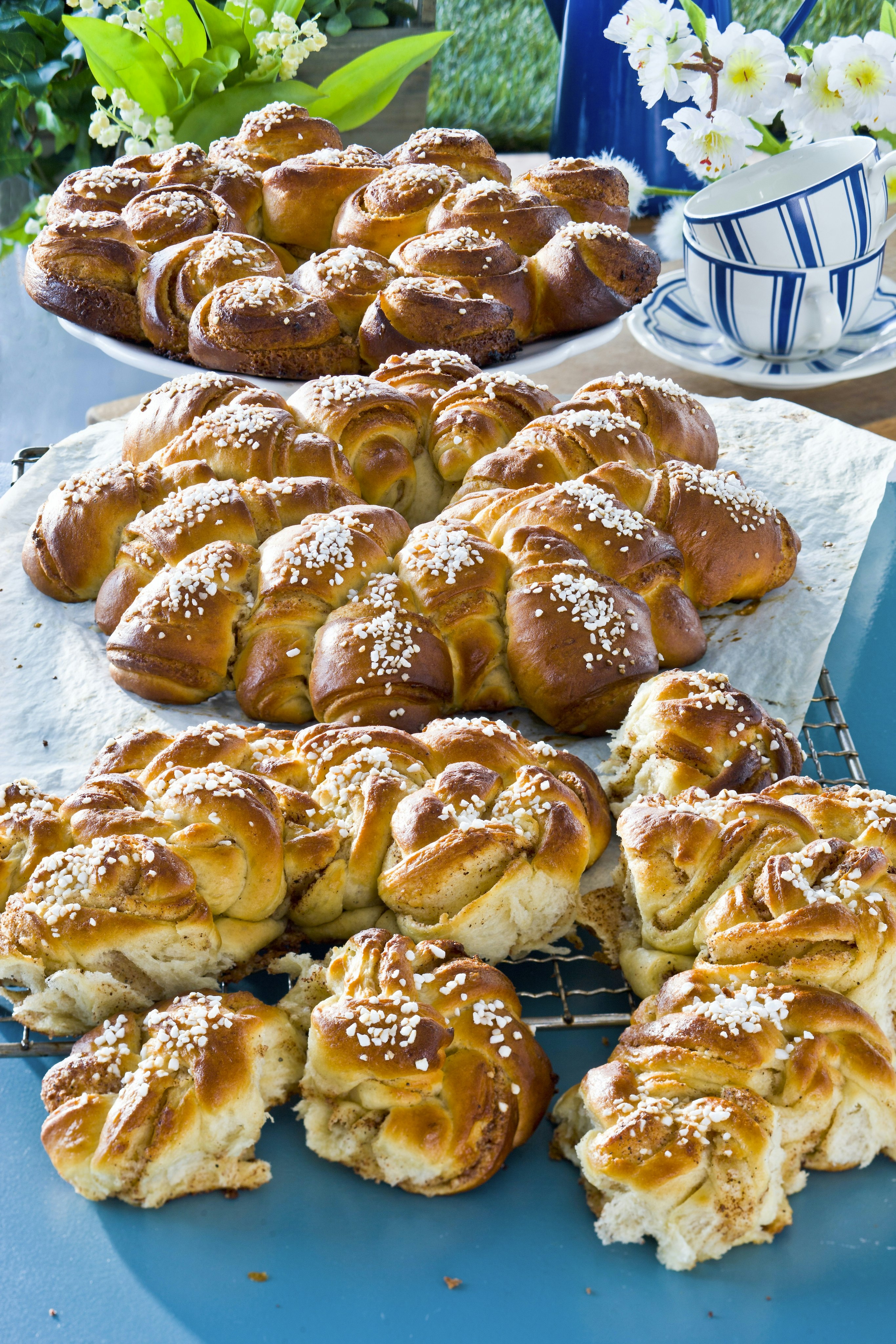 Vetekrans med mandelmassa i tre flätade former